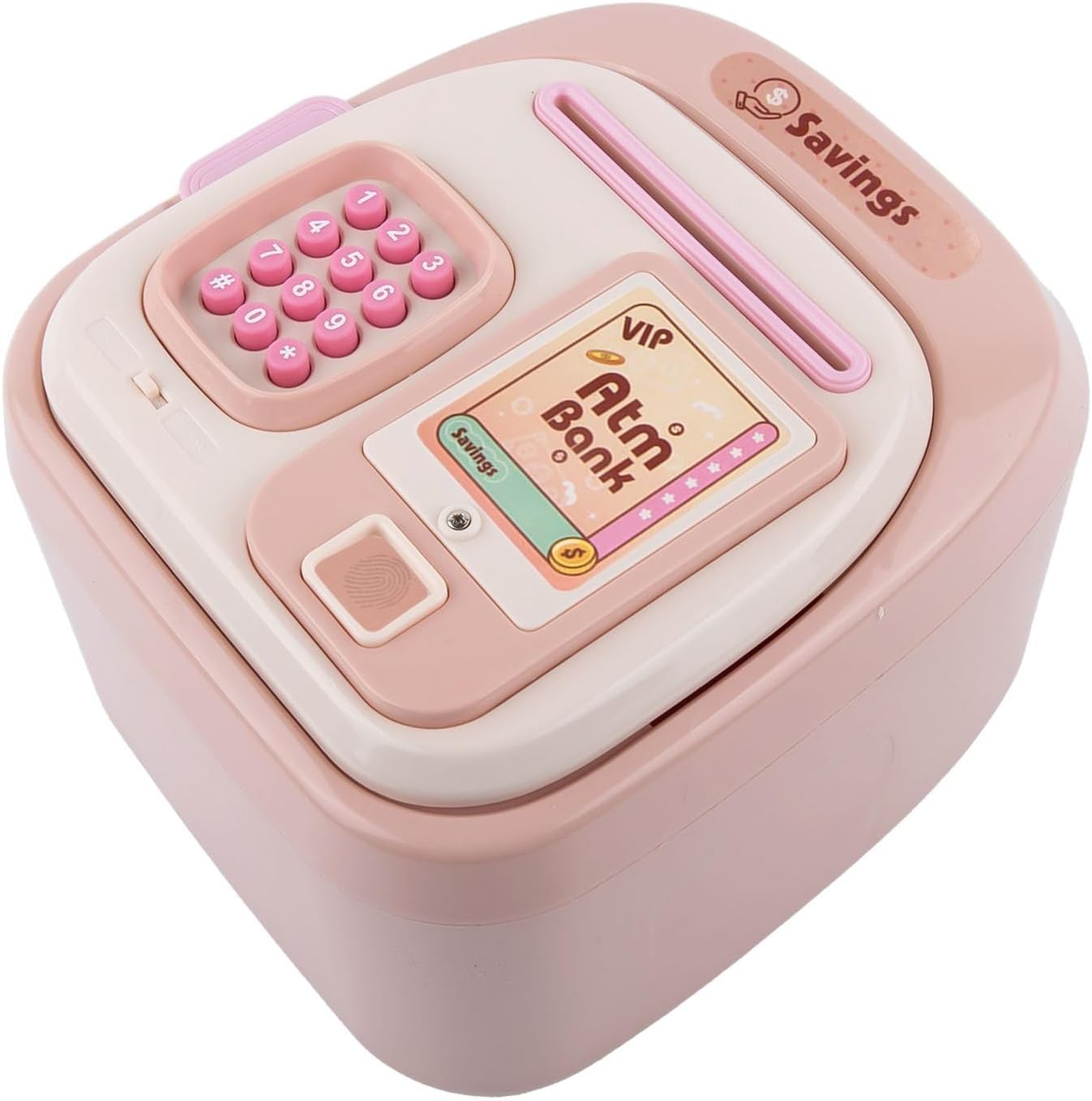 Sicurezza con password: prova una protezione migliorata con il nostro salvadanaio per sblocco delle impronte digitali dotato di un blocco password impostato su 0000 predefinito per un accesso sicuro e l'apertura automatica della porta dopo la verifica riuscita Struttura ABS di lunga durata: realizzata in robusta plastica ABS, questa cassaforte resiste a cadute e maneggevolezza accidentale rendendolo una scelta affidabile per l'uso quotidiano incoraggiando la responsabilità finanziaria attraverso il suo design robusto Spaziosa capacità di archiviazione: il design di grande capacità misura 19,5 x 17 x 13 cm completamente memorizza e banconote aiutando gli utenti a sviluppare abitudini di risparmio coerenti senza preoccuparsi dei limiti di spazio nei colori rosa, verde o marrone Strumento finanziario educativo: questo salvadanaio automatico funge da strumento educativo coinvolgente per insegnare ai bambini l'importanza della gestione del denaro fin dalla tenera età mentre funziona sia come archiviazione sicura che come ornamento decorativo Funzionamento a batteria: richiede 3 batterie AA non ricaricabili da 1,5 V con tasti di commutazione linguistica incorporati tra le modalità cinese e inglese, più funzione di riproduzione filastrocche quando si premono i tasti * e # mentre è chiuso