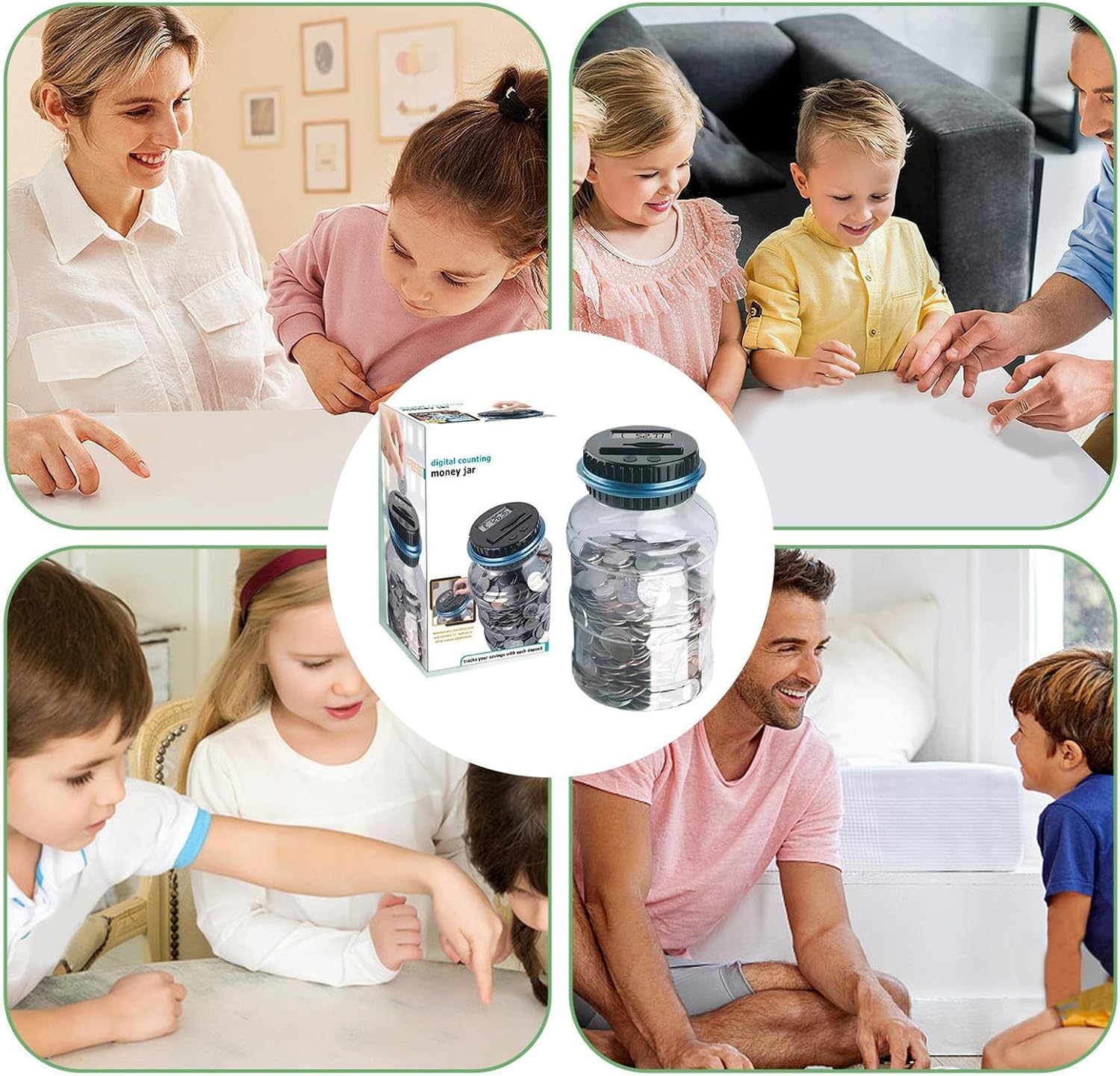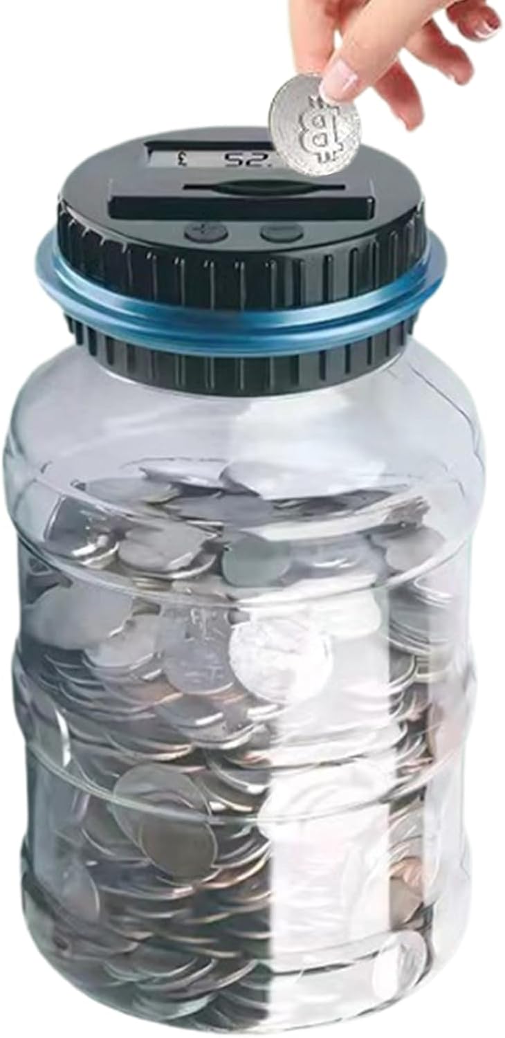 Design divertente per risparmiare denaro: il feedback in tempo reale sul risparmio di denaro diventa eccitante con il design innovativo di Money Saving Jar e la funzione di conteggio intelligente. Goditi un'esperienza di risparmio creativa e coinvolgente: conti immediatamente o manualmente e assisti alla crescita dei tuoi risparmi. Design a forma di secchio: il nostro barattolo per risparmiare denaro è più di un semplice secchio: è un'aggiunta elegante al tuo arredamento, con un design unico e pratico che ti consente di risparmiare denaro in modo efficace. Il grande modello di questo salvadanaio funge da elemento decorativo e fornisce un ottimo modo per risparmiare. Comodo accesso al denaro: il design innovativo dei cappelli rotanti del nostro barattolo di risparmio di denaro rende facile accedere ai tuoi soldi di carta depositati, dandoti un accesso rapido e facile. Uso versatile: adattandosi alle esigenze delle diverse valute nazionali, questa banca di denaro in diverse valute, tra cui sterlina, euro e dollaro, soddisfa varie esigenze di risparmio. Ampia capacità di archiviazione: semplifica il processo di risparmio con il nostro barattolo per risparmiare denaro, che consente di monitorare e depositare facilmente i tuoi piccoli cambiamenti mantenendoli organizzati.