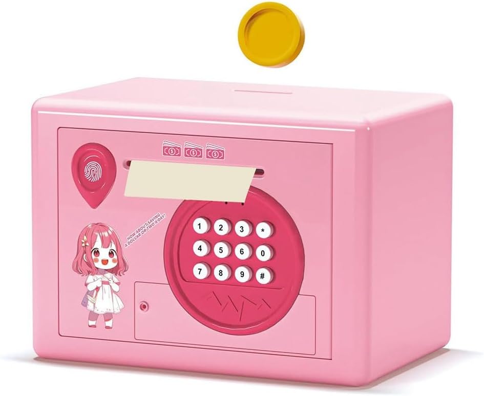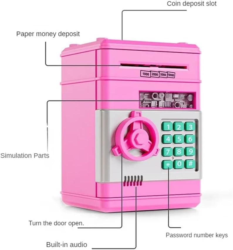 [Mini ATM] la carta è rivolta all'ingresso del denaro, può assorbire automaticamente denaro come un mini ATM. Un salvadanaio per bambini è parte del giocattolo, parte 'ATM, parte della decorazione della stanza del bambino! Questo è un modo divertente per insegnare ai tuoi bambini l'importanza del risparmio e della responsabilità finanziaria. [Protezione tramite password] protezioni tramite password elettroniche, se si preme la password sbagliata, verrà emessa. Basta rimuovere la batteria per più di 30 minuti e la password verrà reimpostata. Questa cassa di risparmio ATM è la migliore banca didattica per bambini! [Il giocattolo per bambini] Questo è un salvadanaio elettronico premium per risparmiare denaro e monete. È scelta migliore per i regali compleanno e per feste dei bambini, come Natale e Capodanno. Offre un modo positivo per i bambini imparare virtù risparmio denaro e sviluppare buone abitudini gestione finanziaria. I bambini possono risparmiare resto per i loro piani, come l'acquisto regali per i loro genitori, amici e familiari. Davvero un eccellente assistente finanziario per bambini! Il salvadanaio multiuso può depositare denaro e monete. Non solo un salvadanaio, ma una cassaforte con password. I salvadanai esistono da così tanto tempo: non c'è modo più divertente per risparmiare denaro! [Sicurezza e servizio] Il salvadanaio è realizzato con materiali ecocompatibili e simula la di sicurezza. (Nota: il salvadanaio richiede 3 batterie AA, ma non sono incluse)
