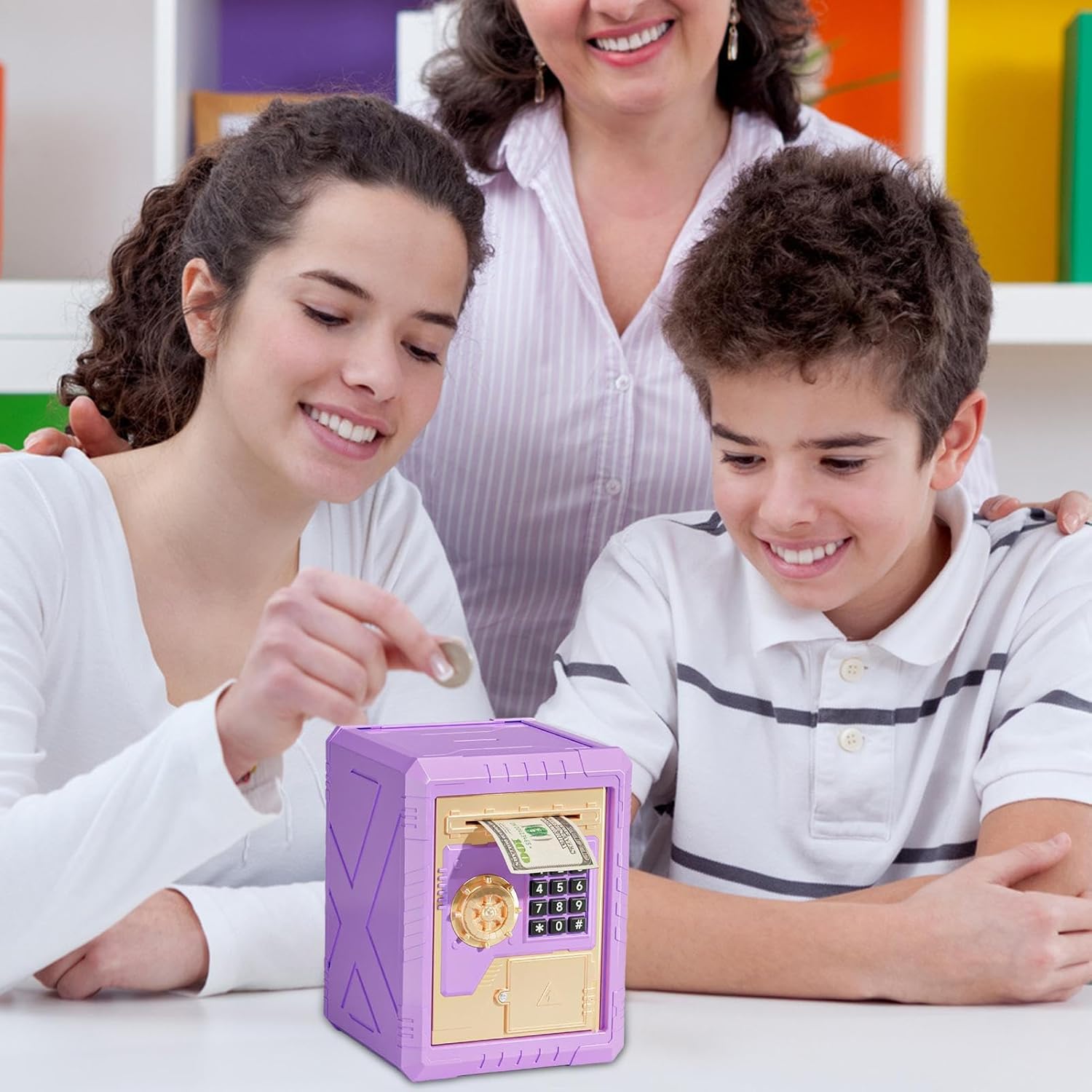 Migliora la consapevolezza finanziaria: il salvadanaio elettronico ha una funzione avanzata di rotolamento automatico che simula un vero processo di deposito ATM. I bambini semplicemente inseriscono i biglietti nell'ingresso per il deposito e il prelievo automatici Facilità d'uso: il nostro salvadanaio elettronico consente ai bambini di sviluppare conoscenze finanziarie senza sforzo grazie a un pannello intuitivo progettato appositamente per loro. Con pulsanti chiari e un'interfaccia facile da usare, i bambini possono facilmente depositare e prelevare denaro Facile gestione del denaro: attraverso l'uso quotidiano, aiuta i bambini a sviluppare una visione corretta del denaro, coltivare buone abitudini, insegnare loro a pianificare le spese, ritardare la gratificazione e comprendere il valore del risparmio Spazioso spazio interno: la soluzione ideale per la crescita finanziaria a lungo termine del tuo bambino, con un interno generosamente spazioso per conservare una grande quantità di banconote Materiale robusto: realizzato in materiale ABS resistente ed ecologico, questo salvadanaio elettronico garantisce un uso duraturo, con bordi lisci per proteggere le dita piccole e fornire tranquillità