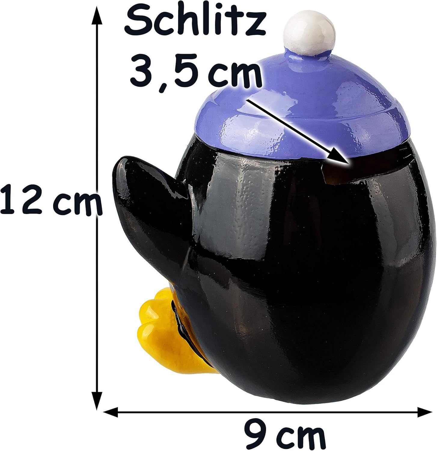 | Material | hochwertiges & sehr stabiles Kunstharz ( Polystone ) ____ sehr stabil ____ circa 12 cm hoch; 9 cm lang und 8 cm breit / die Spardose ist aufwendig bemalt __ der Einwurfschlitz ( 3,5 cm breit ) befindet sich im Rücken __ Unten befindet sich ein Gummipfropfen, der für die Geldentnahme einfach herausgedrückt wird _____ die Spardose ist dadurch immer wieder verwendbar |