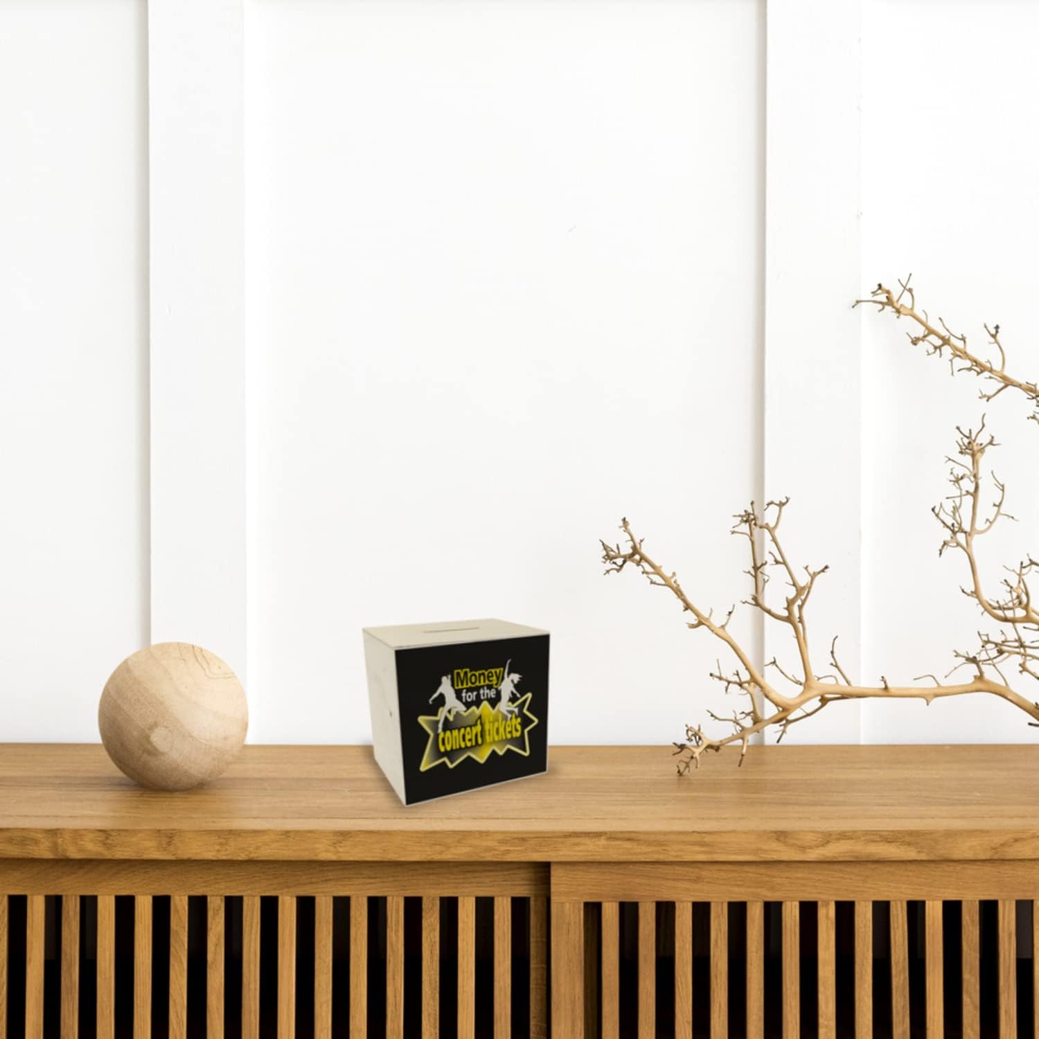 Fornitura: 1x salvadanaio in legno per biglietti di concerti con motivo di ballerina e scritta in nero. Ognuno di noi ha un sogno, piccolo o grande, che vorrebbe realizzare. Se sogni i biglietti per i concerti, questo salvadanaio è il regalo perfetto. Il salvadanaio stampato mostra una donna che balla e un uomo davanti alla scritta "Soldi per i biglietti del concerto" ed è realizzato in colori brillanti. Il salvadanaio con una fantastica motivazione al risparmio ha una fessura nella parte superiore per gettare i soldi. Nella parte inferiore del salvadanaio si trova un piccolo tappo per prelevare denaro. Salvadanaio in legno di alta qualità con stampa colorata sulla parte anteriore. Con tappo in plastica per prelevare denaro sul fondo. Altezza ca. 9,8 cm, larghezza ca. 10,1 cm e profondità ca. 8 cm. Peso ca. 74 g.
