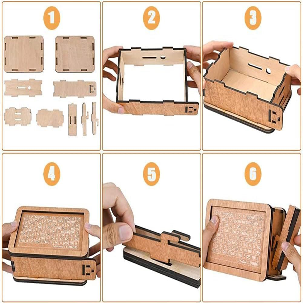 ★ 【Materiale】 Il salvadanaio è realizzato in materiale di legno ecologico di alta qualità, che non è facile da danneggiare, durevole e più resistente alle cadute rispetto alla ceramica. ★ 【Crea un'abitudine al risparmio】 Salvadanaio con obiettivo di risparmio, ti aiuta a motivarti a risparmiare per obiettivi speciali (ad esempio la patente di guida), fondo di emergenza, acquisti importanti o vacanze. Raggiungi i tuoi obiettivi di risparmio segnando l'importo nel salvadanaio e monitorando i tuoi progressi verso il tuo obiettivo. ★ 【Riutilizzabile】 Il nostro salvadanaio per bambini è riutilizzabile, il salvadanaio con numeri viene fornito con una penna cancellabile e solubile in acqua, puoi tenere traccia dell'importo risparmiato e dell'indicatore del salvadanaio spuntando il numero sulla scatola. Una volta raggiunto l'obiettivo da segnare, utilizza la gomma sull'altra estremità della penna per rimuovere e riutilizzare facilmente i segni. ★ 【Facile da installare】 Per garantire un trasporto sicuro, il salvadanaio viene smontato quando lascia la fabbrica, ma può essere installato in pochi minuti semplicemente unendo i fori corrispondenti e quindi utilizzandolo. (Per aprire, utilizzare un coltello o un cacciavite per aprire con attenzione il lato con i numeri). ★ 【Applicabile a tutte le età】 Money Saving Box è indipendente dal sesso e dall'età, quindi è molto adatto a qualsiasi ragazzo o ragazza, bambini piccoli, adolescenti o adulti, adatto a qualsiasi fascia di età, con usi diversi, basta esprimere un desiderio per trasformare la tua banca in un fondo universitario, una cassa per fondi per matrimoni, ecc.