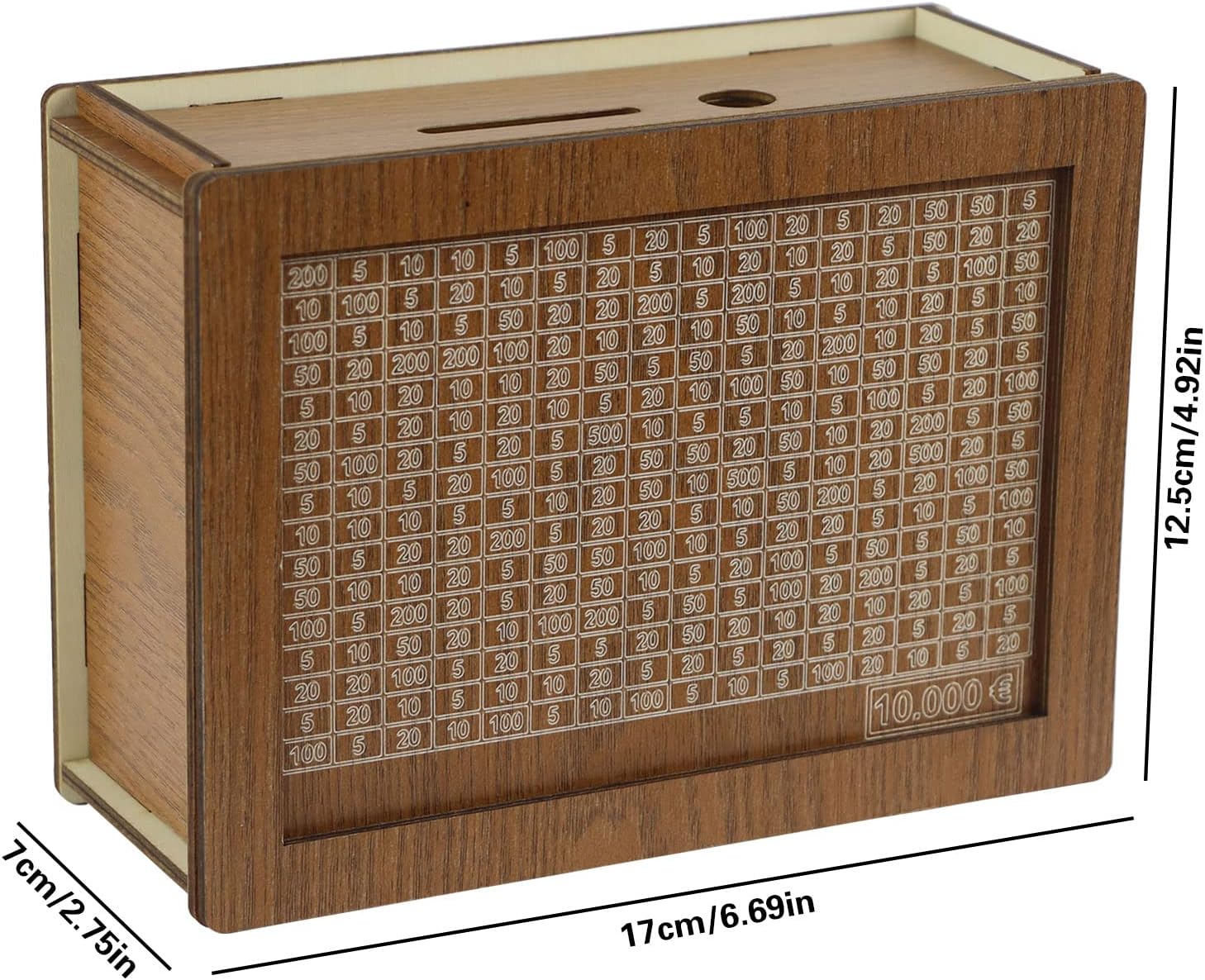 【Scatola di risparmio con obiettivo di risparmio】 Il modo unico di risparmiare rende il risparmio più divertente e puoi sempre vedere il successo sulla scatola. Questa è una buona cosa anche per i bambini, quindi risparmiare non è noioso. È anche un modo semplice per gli adulti di risparmiare denaro e puoi risparmiare senza perdere la motivazione. 【Obiettivi di archiviazione multipli tra cui scegliere】 Ci sono quattro obiettivi tra cui scegliere per il salvadanaio. Devi spuntare l'importo stampato sulla casella e poi inserire l'importo nel salvadanaio. Se tutte le caselle sono selezionate, hai raggiunto il tuo obiettivo. Puoi scegliere diversi obiettivi a seconda delle tue esigenze. Facile da montare: non sono necessari colla o altri strumenti, il nostro salvadanaio arriva smontato. Molto facile da montare, richiede solo pochi minuti e pochi semplici passaggi per essere completato. Viene fornito con una penna cancellabile in modo che non rimangano segni sul salvadanaio e il salvadanaio possa essere riutilizzato. Realizzato in legno di alta qualità, è sicuro da usare. Durevole e infrangibile per un uso a lungo termine. 【Regalo ideale】 Il salvadanaio non solo aiuta gli adolescenti e gli adulti a sviluppare l'abitudine di risparmiare denaro e migliorare l'autodisciplina. È anche una decorazione vintage in legno, un regalo creativo per te, la famiglia e gli amici, da posizionare sul bancone per abbellire il tuo soggiorno, camera da letto o studio.