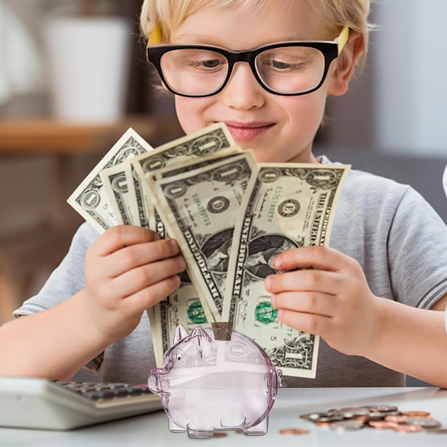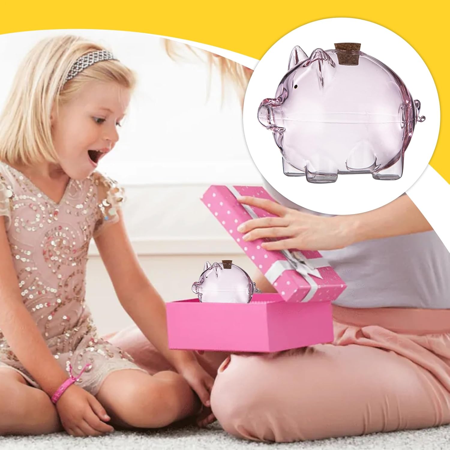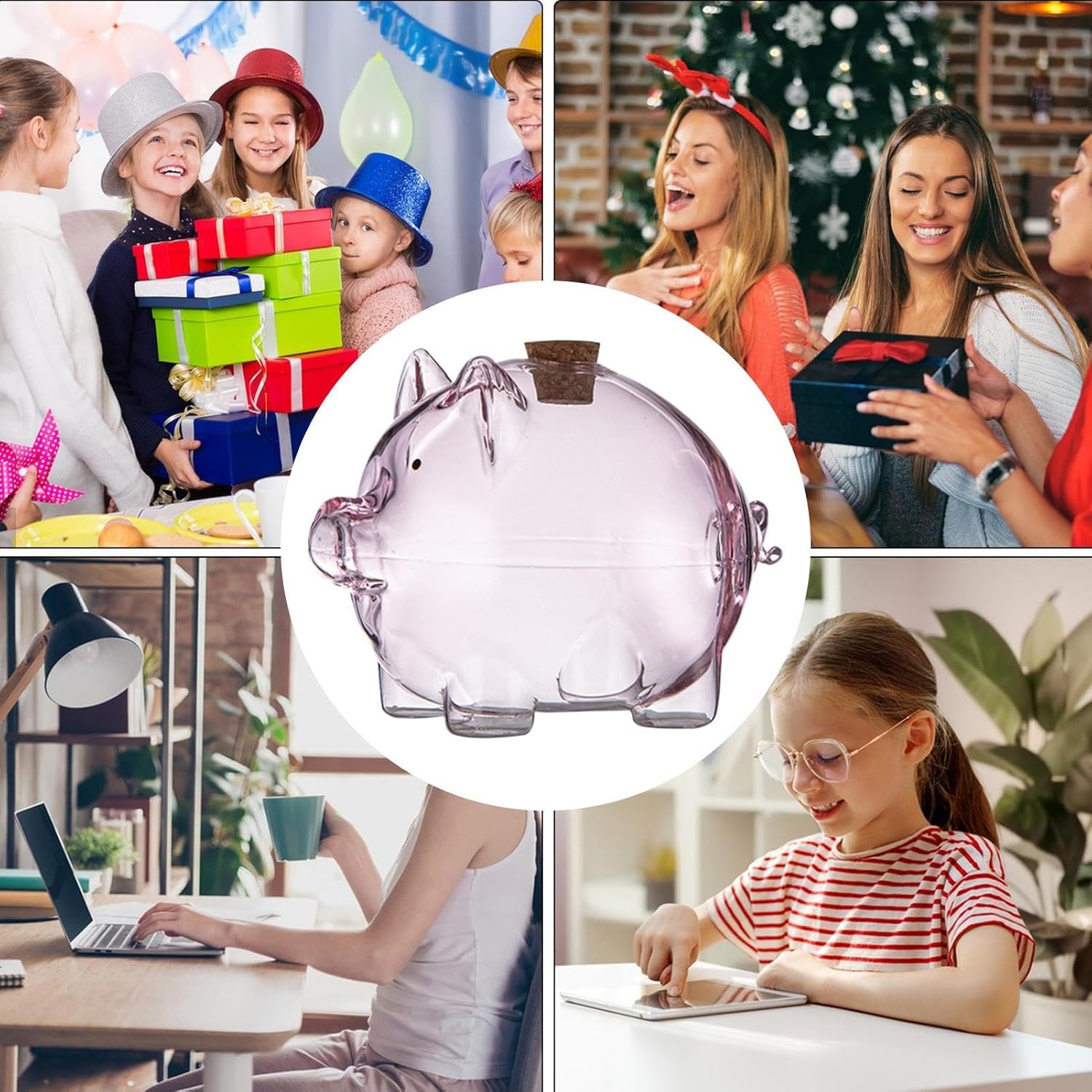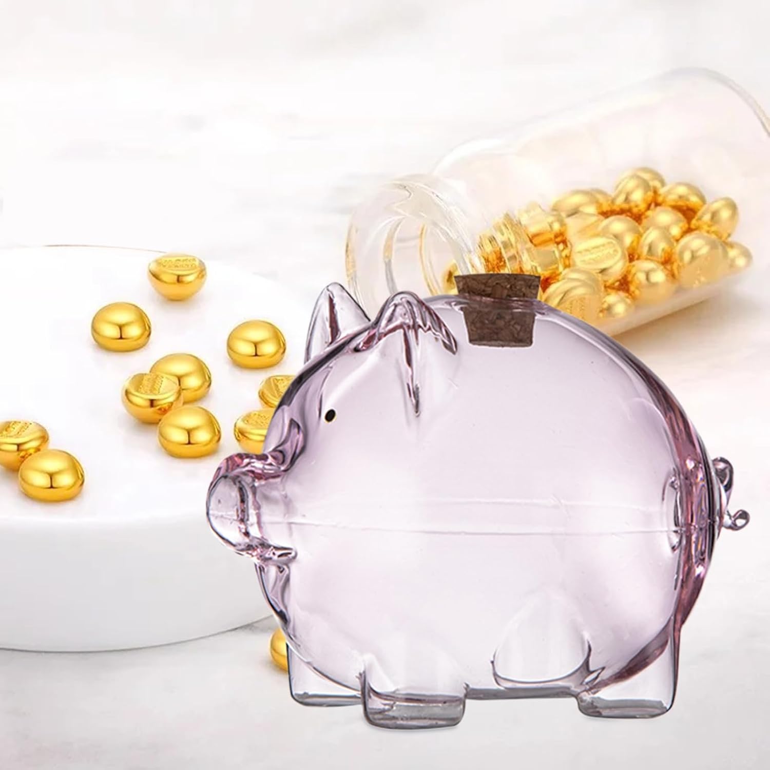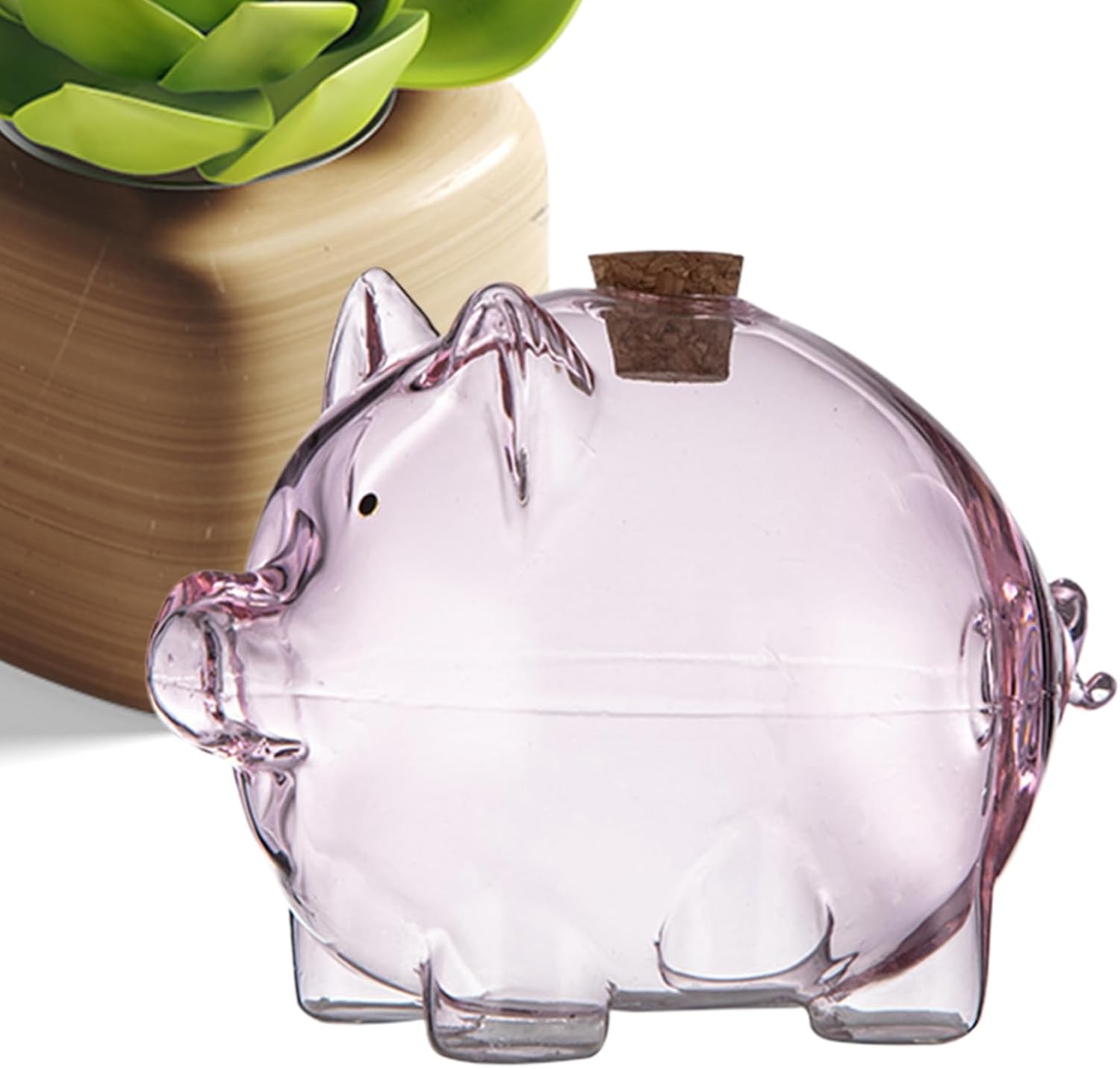 Multiuso: solleva la tua routine di risparmio con questo salvadanaio decorativo in vetro. La banca funge da costante promemoria visivo dei tuoi obiettivi finanziari mentre funziona come un attraente centrotavola Materiale robusto: realizzato in vetro di prima qualità, questo salvadanaio offre un modo raffinato per conservare i tuoi risparmi. Il suo design lucido offre una consistenza perfetta per un'esperienza elegante e inodore proteggendo al contempo denaro e banconote Design adatto ai viaggi: progettato per stili di vita moderni, questo salvadanaio portatile in vetro occupa uno spazio minimo e scivola facilmente in tasche o borse. La struttura leggera garantisce un trasporto senza sforzo Ampia gamma di usi: perfettamente dimensionato per fagioli d'oro, stelle dei desideri, monete commemorative e oggetti compatti simili, questa banca di vetro combina utilità con fascino visivo. Il suo design versatile migliora librerie, tolette, espositori e scrivanie allo stesso modo Adorabile design a forma di maiale: con la sua adorabile forma a maiale e il suo fascino potente, questo salvadanaio in vetro è un modo divertente e affascinante per coltivare abitudini di risparmio costanti