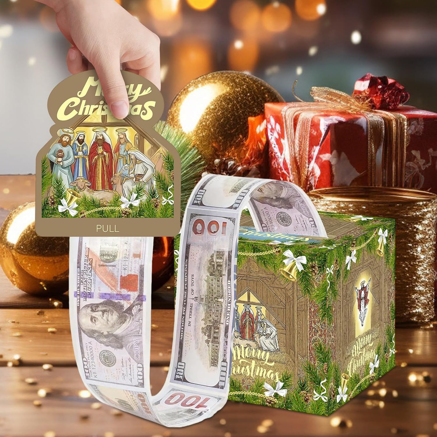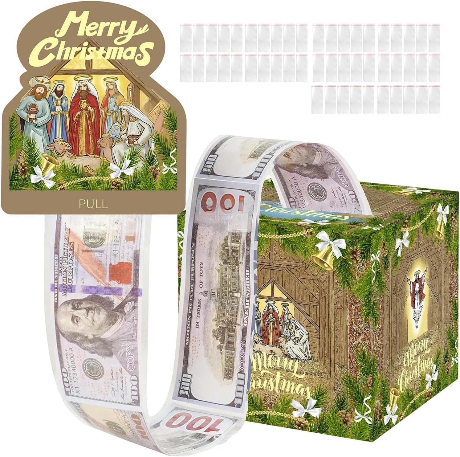 Materiali Robusti: Lavorato in cartone spesso anti-deformazione, include disegni anti-sbiadimento e stampe natalizie HD per un appeal duraturo nel Crea Tradizioni Natalizie: Combina ricordi festivi e approccio innovativo al regalare denaro. Offre esperienze interattive coinvolgenti che avvicinano le famiglie durante le vacanze, creando momenti speciali. SCENARI APPLICABILI: Con 50 tasche trasparenti organizza banconote, contanti e carte in modo ordinato. Ideale per bonus, regali o premi grazie alla versatilità nella presentazione e all'adattabilità a diverse esigenze festive. 3. Festiva Creativa: Incanta chi riceve il regalo con l'effetto gioioso del denaro che scende come neve, svelando banconote fluttuanti nella scatola portadoni. Aumenta naturalmente la gioia delle feste. Facile da Montare: Struttura pieghevole con apertura a cassetto scorrevole e buste trasparenti per inserimento contanti, garantisce esperienza utente senza strumenti