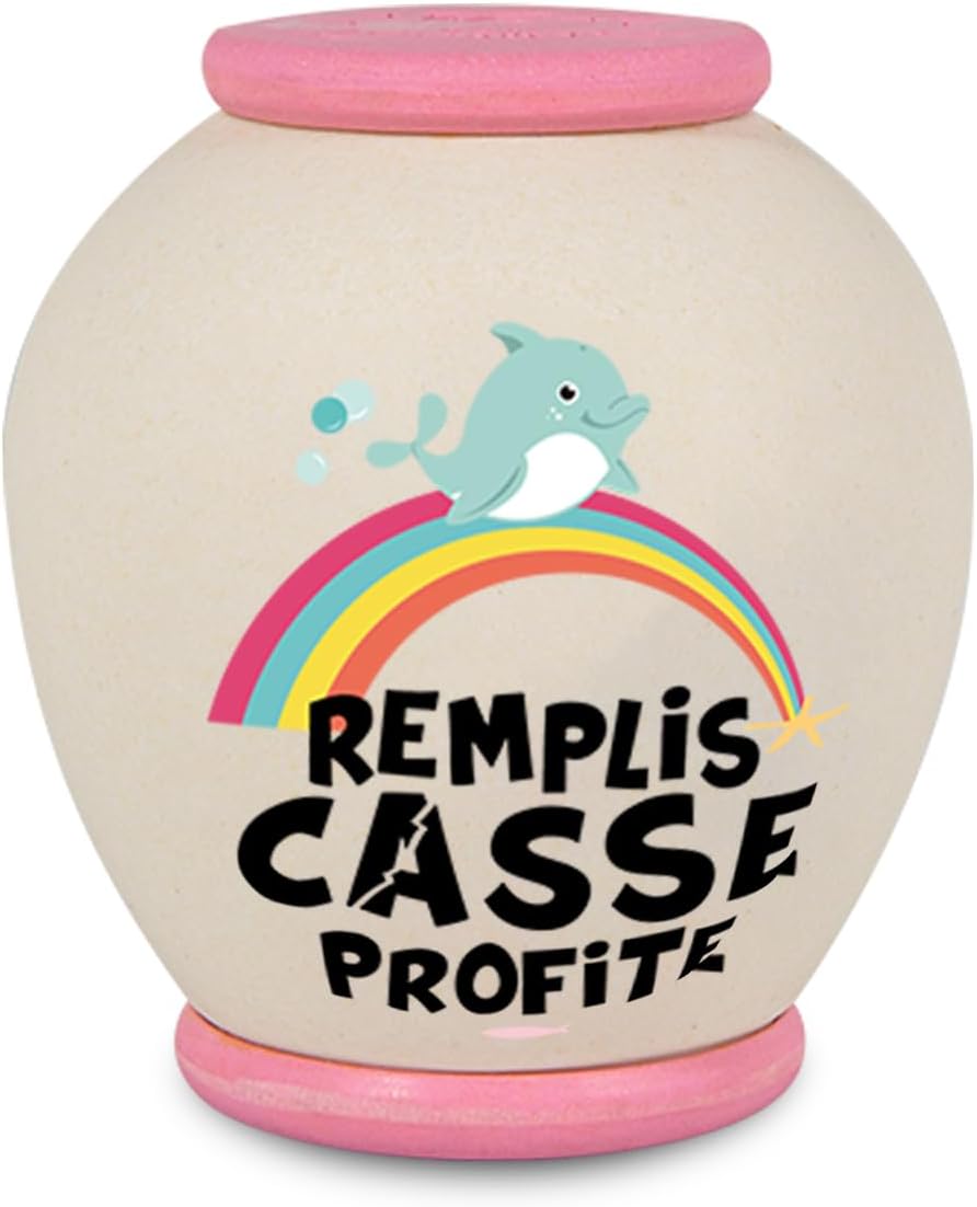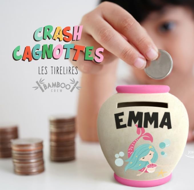 SALVADANAIO PERSONALIZZATO - Ogni salvadanaio Crash Cagnottes è unico con un titolo generico e un'immagine colorata sul davanti. Sul retro, la scritta "FÜLLT CASSE PROFITE" aggiunge un tocco personale. DESIGN ATTRAENTE PER IL RISPARMIO - Il design accattivante dei nostri salvadanai è stato appositamente studiato per suscitare interesse e incentivare il risparmio. I colori vivaci e il carattere colorato catturano l'attenzione e rendono l'esperienza di salvataggio giocosa per grandi e piccini. Facile accesso ai risparmi: quando il tuo salvadanaio è pieno, tutto ciò che devi fare è romperlo delicatamente per ottenere i tuoi risparmi. Questo semplice passaggio aggiunge una dimensione entusiasmante al risparmio e trasforma il processo in un'esperienza gratificante. MATERIALE SOSTENIBILE E BIOLOGICO - I salvadanai Crash Cagnottes sono realizzati in bambù, una materia prima rinnovabile ed ecologica. I detriti creati dalla rottura del salvadanaio sono in gran parte biodegradabili, riducendo al minimo l'impatto sull'ambiente. REGALO IDEALE: Cerchi un regalo originale e indimenticabile? Questo salvadanaio personalizzato è perfetto per ogni occasione, che si tratti di un compleanno, di Natale o di un'altra celebrazione.