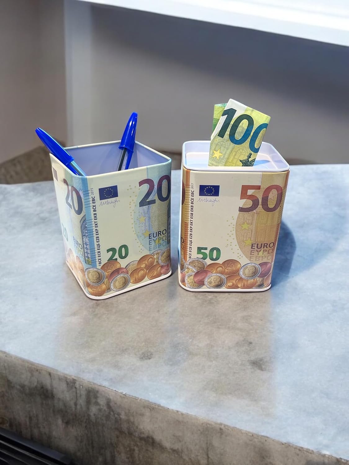 Salvadanaio dai colori vivaci, 20 euro, 50 euro, 100 euro, 200 euro. Salvadanaio leggero e robusto. Piccolo salvadanaio per bambini. Dimensioni e peso dell'articolo: 7,5 x 10,5 x 7,5 cm, 90 g Salvadanaio originale e divertente Salvadanaio con coperchio per far sì che i più piccoli della casa inizino a risparmiare. Rimuovendo il coperchio superiore può essere utilizzato anche come portapenne