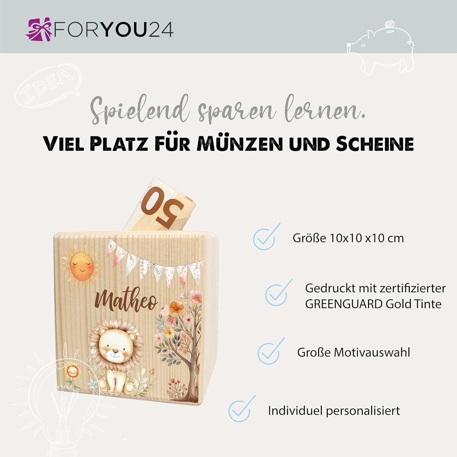 Perfetto per la prima paghetta: con un fantastico salvadanaio per bambini in regalo, i bambini imparano a usare il denaro in modo simpatico e parsimonioso – e hanno una decorazione straordinaria nella cameretta dei bambini. Moderno processo di stampa per colori brillanti e duraturi senza perdita di qualità Tappo in gomma per una facile rimozione
