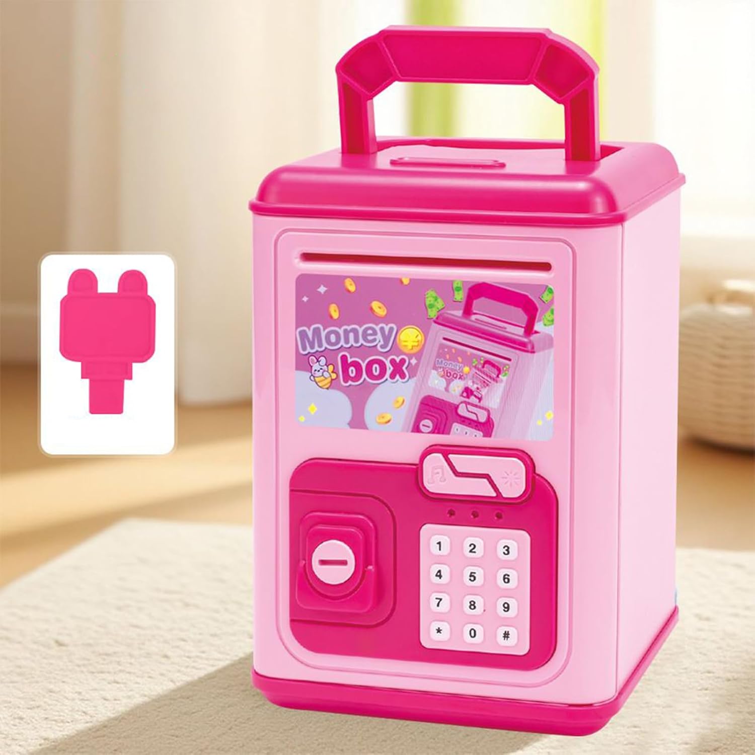 Consapevolezza Monetaria: Promuove la responsabilità finanziaria attraverso comportamenti di risparmio regolari, permettendo ai bambini di comprendere il valore del denaro e costruire solide per future competenze economiche essenziali Educativa: Regalo unico per occasioni speciali che combina intrattenimento e sviluppo delle abilità pratiche. Design pensato per rendere il risparmio un'attività coinvolgente e istruttiva per ogni bambino. Struttura Robusta: Caratterizzato da ABS ecologico ad alta resistenza, offre durabilità superiore, struttura durevole e protezione affidabile contro l'usura quotidiana e gli impatti Operazione comoda: Include un ingresso banconote a sensore che arrotola automaticamente le banconote mentre conserva insieme monete e banconote, assicurando versamenti facili e gestione del denaro organizzata Interattività Musicale: Coinvolge i bambini con allegre melodie integrate che suonano inserendo monete, motivando al risparmio attraverso un'esperienza interattiva e coinvolgente per i piccoli risparmiatori.