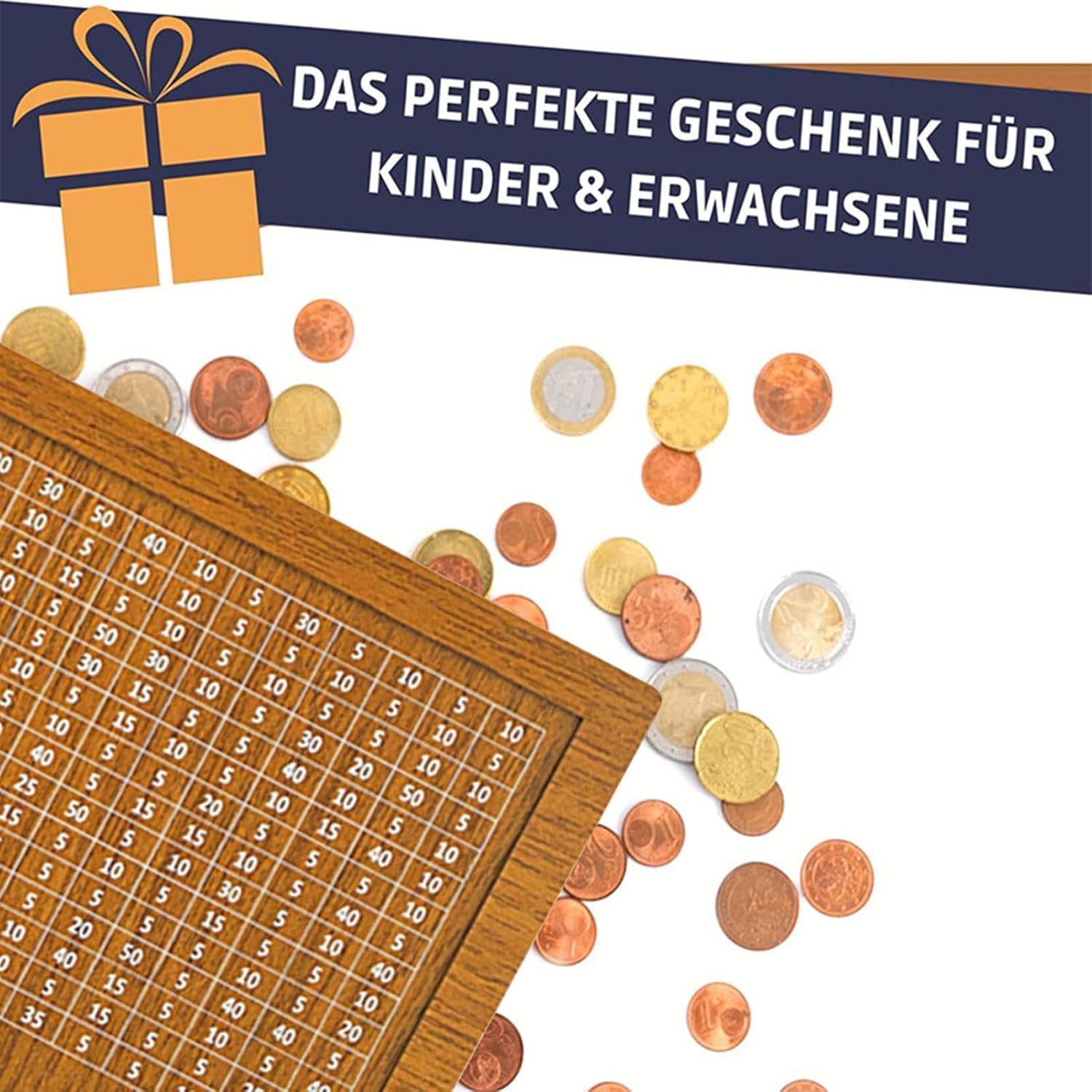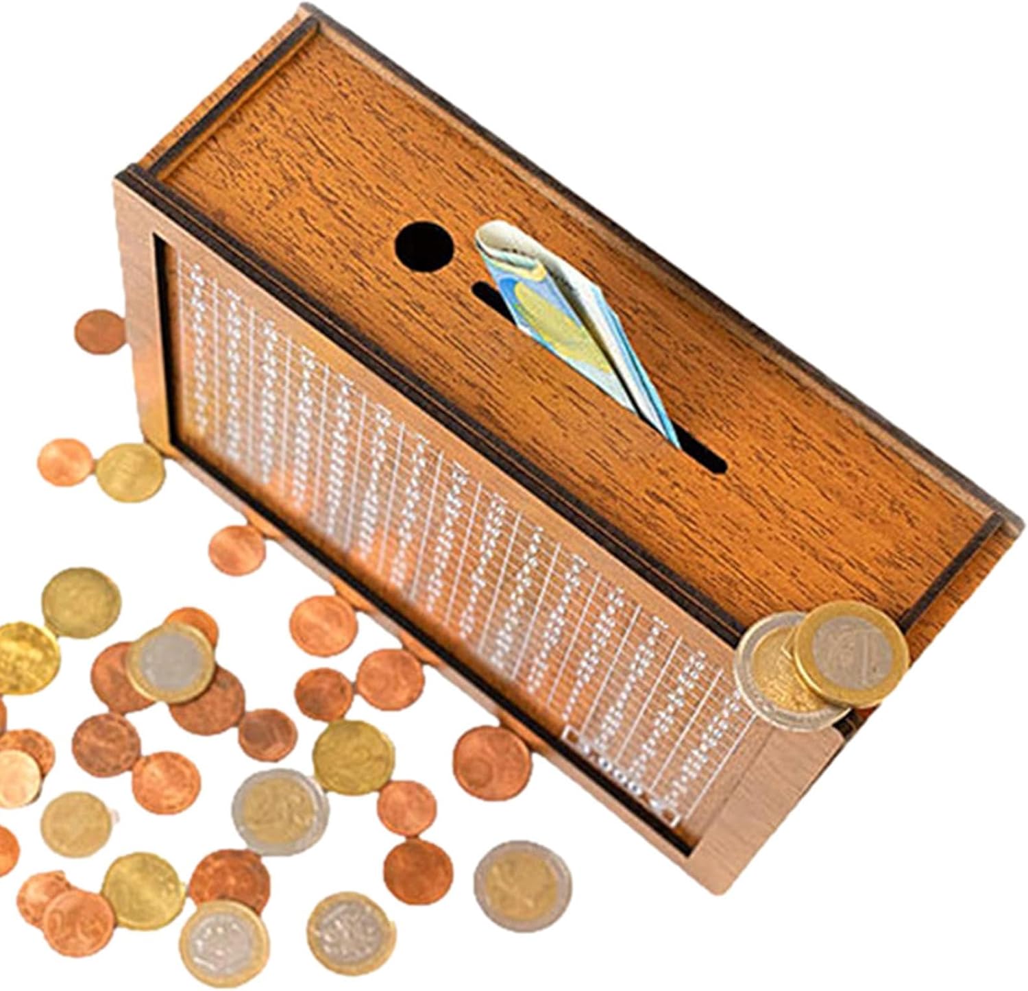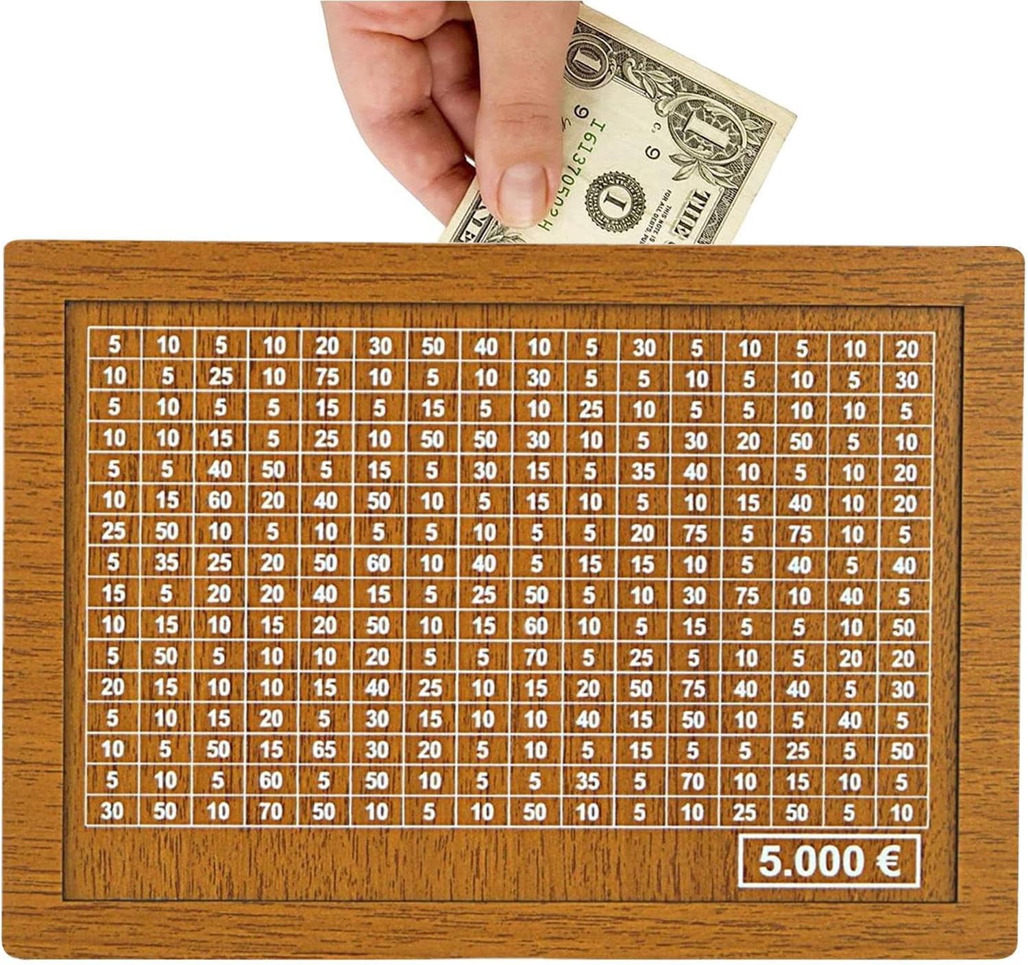 Regalo commovente: la nostra scatola di risparmio in legno è un regalo perfetto per occasioni speciali che consente al bambino di creare il proprio piano di risparmio per il raggiungimento degli obiettivi. Compagno della sfida di risparmio: realizzata per l'impegno, questa scatola di legno ti sfida a fissare e raggiungere gli obiettivi di risparmio, offrendo uno smontaggio soddisfacente una volta raggiunto il tuo obiettivo, a differenza delle banche in acciaio. Aiuto alla pianificazione finanziaria: utilizzando la nostra scatola di risparmio in legno, puoi creare un piano efficace per risparmiare denaro per raggiungere i tuoi obiettivi. Riduci le spese inutili e inizia a risparmiare per i tuoi sogni in modo intelligente ed elegante. Protezione per banconote e monete: realizzata con un design stretto, la nostra scatola di risparmio in legno assicura che le banconote e le monete siano conservate in modo sicuro, accessibile solo impegnandosi nella sua rottura intenzionale. Ampia applicazione: con la nostra scatola di risparmio in legno, aiutare e motivare bambini e adulti a sviluppare abitudini di risparmio non è mai stato così facile. Non solo per i bambini, ma anche per gli adulti che vogliono iniziare a risparmiare, questa scatola ti aiuterà a vedere crescere i tuoi risparmi.