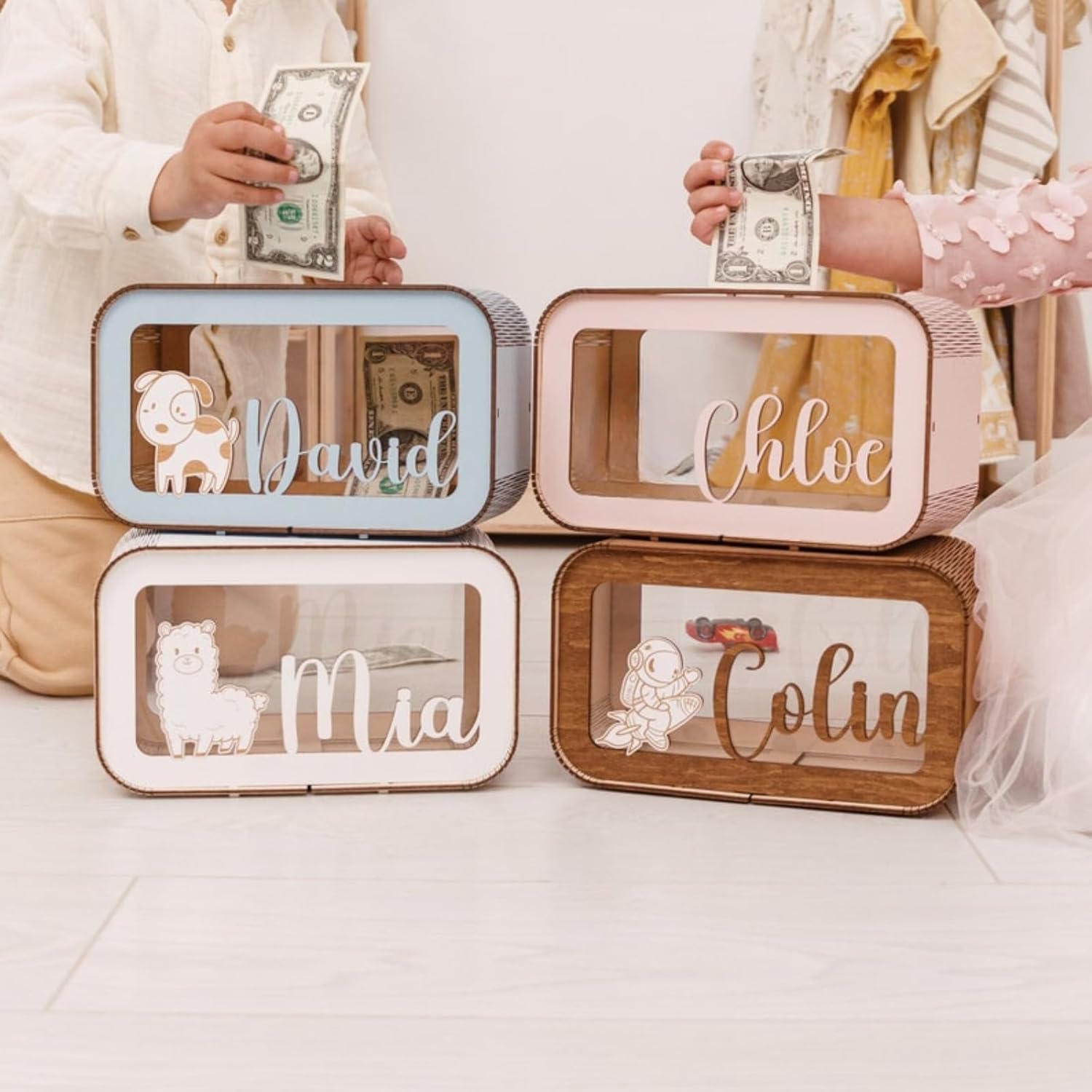 1. Salvadanaio personalizzato per bambini: questo salvadanaio in legno fai-da-te può essere personalizzato con il nome e la data di nascita del bambino incisi sul salvadanaio, diventa un ricordo unico e personalizzato che sarà apprezzato per anni. 2. Materiali: realizzato in legno di betulla biologico di alta qualità, noto per la sua durata e le sue proprietà ecologiche. La vernice a base d'acqua utilizzata garantisce la sicurezza del bambino. 3. Incoraggia il risparmio: insegna ai bambini l'importanza di risparmiare denaro fin dalla giovane età con questo salvadanaio personalizzato. Fornisce un modo divertente e coinvolgente per i bambini di conoscere la responsabilità finanziaria. 4. Colori: blu, rosa, bianco, legno, inserire monete o banconote nel salvadanaio attraverso lo slot designato. La banca può essere facilmente aperta per recuperare i soldi risparmiati. Il salvadanaio può essere utilizzato anche come elemento decorativo in asili, camere da letto o sale giochi, aggiungendo un tocco di fascino allo spazio. 5. Regalo premuroso: questo salvadanaio personalizzato è un regalo perfetto per compleanni, Natale, Pasqua o altre occasioni speciali. Può anche essere un regalo significativo per battesimo, comunione o cresima.