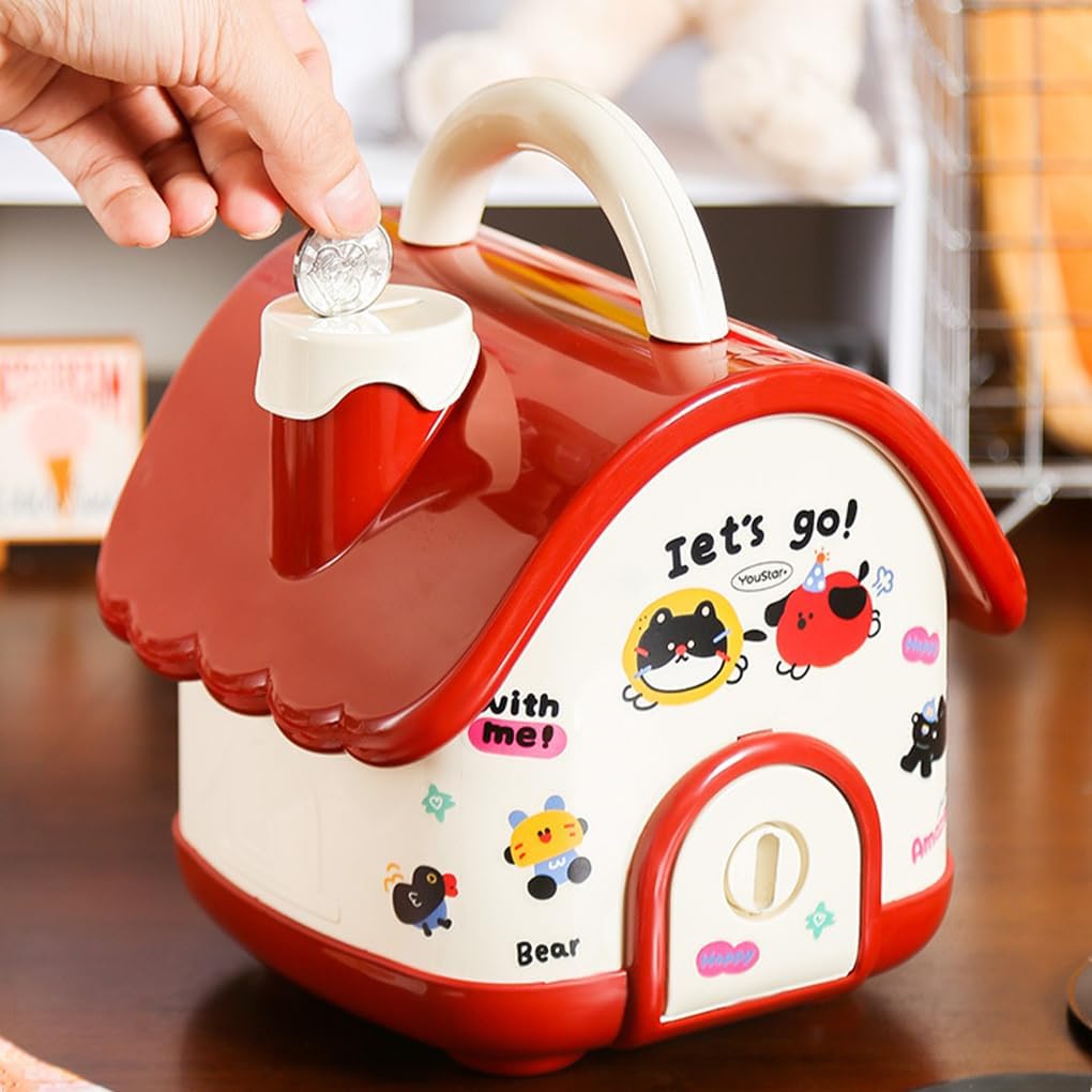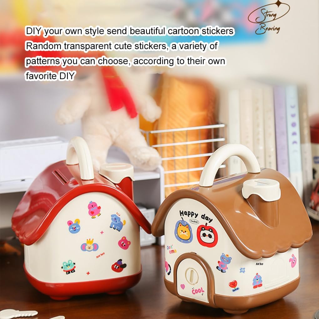 Un salvadanaio a forma di piccola casa: fai da te il tuo salvadanaio con adesivi casual e usalo come decorazione per la scrivania Inseribile con banconote o denaro di Per altra forma: due modalità di inserimento e bloccaggio sicuro dei tuoi risparmi con banconote Grande capacità e slot per chiavi: un dispositivo portatile con slot per chiavi per riporre le chiavi e aiutare i bambini a migliorare la loro capacità di risparmio Design dall'aspetto carino: il simpatico design dei cartoni animati consente ai bambini di risparmiare denaro, il che è divertente e facile Giocattoli per bambini: un modo divertente e pratico per far sì che i bambini imparino a risparmiare denaro e a sviluppare buone abitudini finanziarie