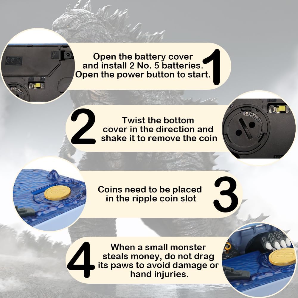 👾【Salvadanaio squisito e creativo】Il salvadanaio Cerkkapo è un salvadanaio progettato con il mostro Go-dzil-la, salvadanaio che è allo stesso tempo creativo e interessante. Metti alcune monete davanti ad esso e premilo, questo attiva l'azione e mangia tutte le monete. 👾【Musica ed effetti luminosi】Dopo aver premuto il pulsante di avvio, dall'altoparlante verranno riprodotti 4 effetti sonori realistici e casuali del ruggito dei mostri, le luci del salvadanaio lampeggeranno e apparirà Go-dzil-la per rubare i soldi! 👾【Salvadanaio di Grande Capacità】Il salvadanaio elettronico può contenere da 20 a 40 monete prima che debbano essere svuotate. C'è una chiusura a scatto nella parte inferiore della scatola che puoi aprire per recuperare tutti i soldi che hai risparmiato. 👾【Regalo ideale】Questo salvadanaio è un ottimo regalo per Natale, Pasqua, compleanno o Capodanno, ecc. 👾【Garanzia di servizio】Alimentato da 2 batterie AA (batterie NON incluse). Se avete domande su questo salvadanaio, non esitate a contattarci. Risolveremo il problema il prima possibile. (Nota: la sorgente luminosa funziona a batteria)