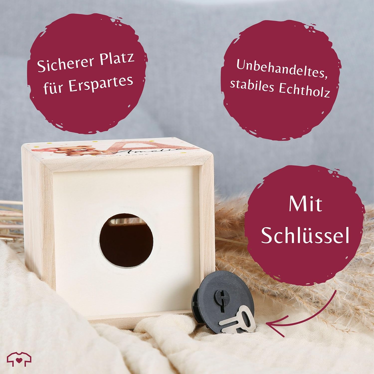 Materiale: Salvadanaio in legno di betulla naturale con bordi leggermente arrotondati Fornitura: Salvadanaio in legno con chiave e serratura Dimensioni: Salvadanaio quadrato in legno 10 cm x 10 cm x 10 cm Idea regalo: Salvadanaio in legno per bambini e adulti Materiale: Salvadanaio in legno di betulla naturale con bordi leggermente arrotondati