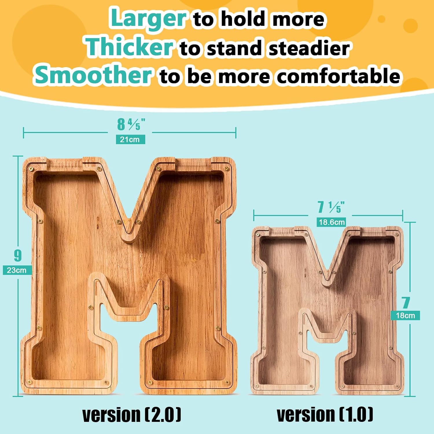 Giocattolo educativo e divertente: i bambini adoreranno il salvadanaio con il proprio nome. Il pannello trasparente del salvadanaio ti affascinerà osservando la crescita dei risparmi. Idea regalo perfetta per neonati, ragazzi, ragazze. DESIGN UNICO - Questo è un grande salvadanaio a forma di lettera realizzato al 100% in legno organico. La copertura in vetro acrilico trasparente consente di vedere attraverso la moneta all'interno e valutare l'avanzamento del risparmio di denaro. Sicuro e confortevole: lo abbiamo reso più grande e più spesso per renderlo stabile e lo abbiamo lucidato 4 volte per farlo sentire più a suo agio. Può essere utilizzato anche come decorazione per negozi o regali di nozze. PUÒ ESSERE PERSONALIZZATO - Abbiamo le lettere maiuscole dalla A alla Z più la forma di animale "Maiale", "Dinosuar", "Unicorno" in modo da poter personalizzare qualsiasi combinazione. Offriamo anche l'incisione laser sulla parte anteriore e il servizio di incisione del testo sul retro a un costo aggiuntivo. Si prega di controllare un altro collegamento nel nostro negozio. QUALITÀ PREMIUM E SERVIZIO POST-VENDITA: Siamo orgogliosi della qualità e dell'originalità dei nostri salvadanai in legno per adulti e bambini, motivo per cui vengono forniti con una garanzia di soddisfazione per garantire la tua totale felicità.