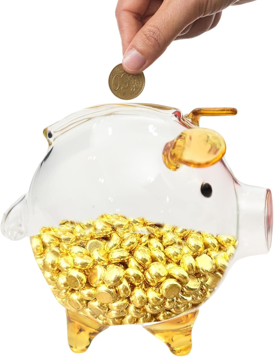 Design carino a forma di maiale: il suo simpatico design a forma di maiale e la squisita fattura lo rendono un'aggiunta divertente e creativa alla tua casa. Il design trasparente aggiunge eccitazione man mano che vedi crescere i tuoi risparmi. Sviluppa la consapevolezza finanziaria: questa chiara banca di monete di maiale aiuta a coltivare i concetti di gestione finanziaria dei bambini aumentando l'interazione genitore-figlio. Design altamente trasparente: realizzato in vetro duro e spesso con materiali selezionati, questo salvadanaio trasparente a forma di maiale garantisce un uso duraturo per gestire la crescita del risparmio nel tempo. Molteplici usi: trasforma qualsiasi spazio in un paradiso unico con questo salvadanaio trasparente. Un tocco di stile per camere da letto, soggiorno o sala da pranzo, bar, ristoranti, negozi o alberghi. Bel regalo: questo salvadanaio trasparente a forma di maiale è un buon modo per insegnare ai tuoi bambini il valore del risparmio denaro, portando loro sorpresa e felicità ogni volta che lo riempiono.