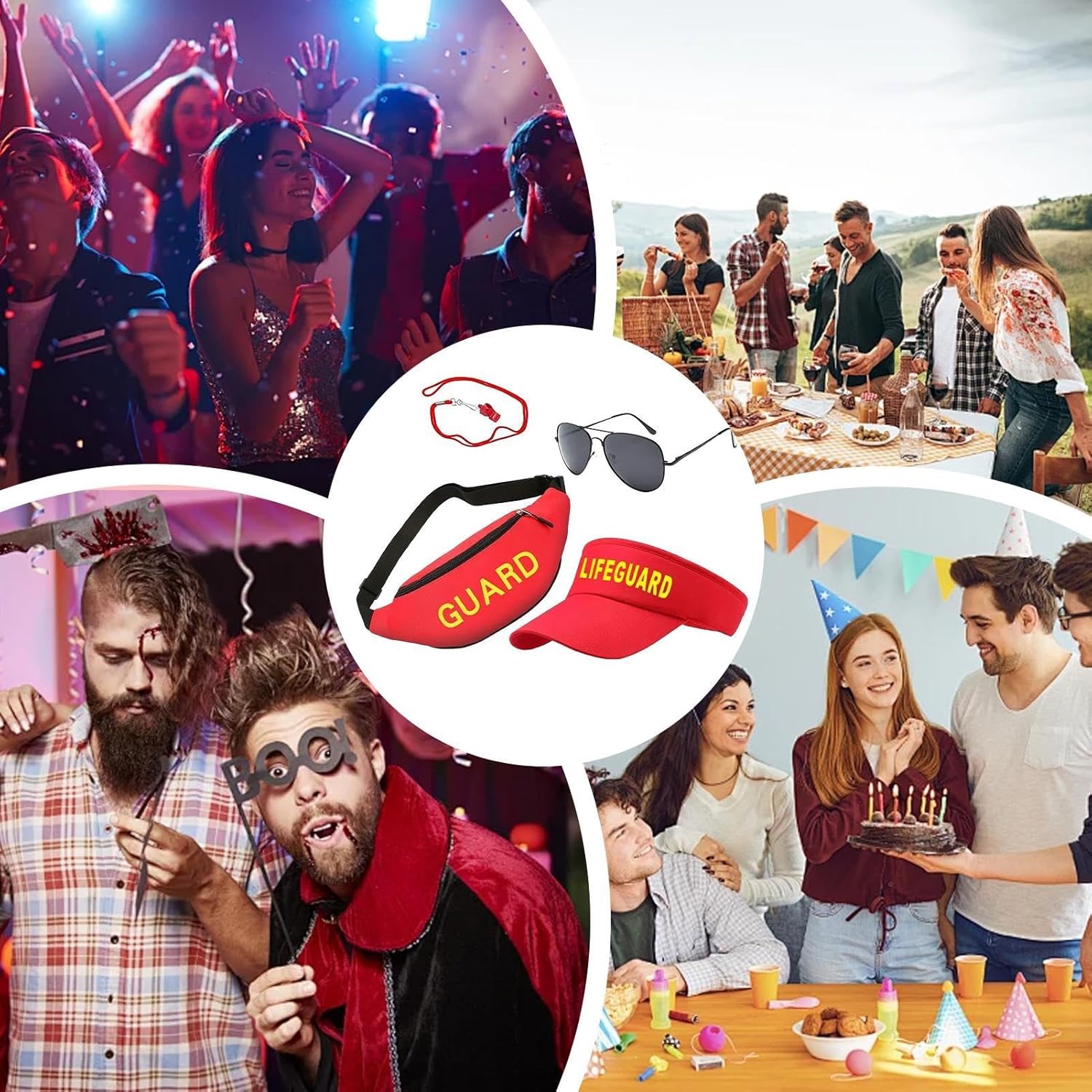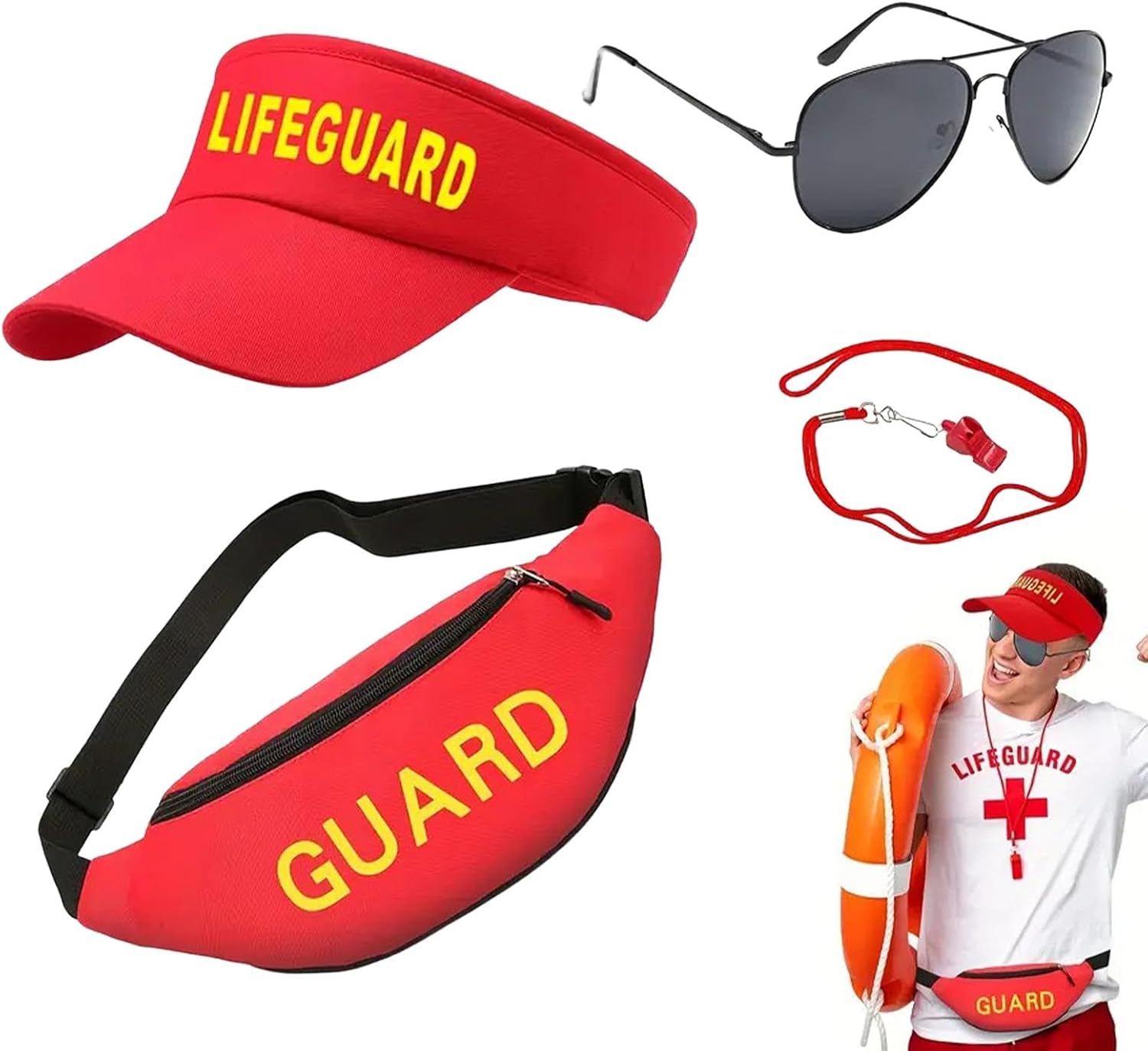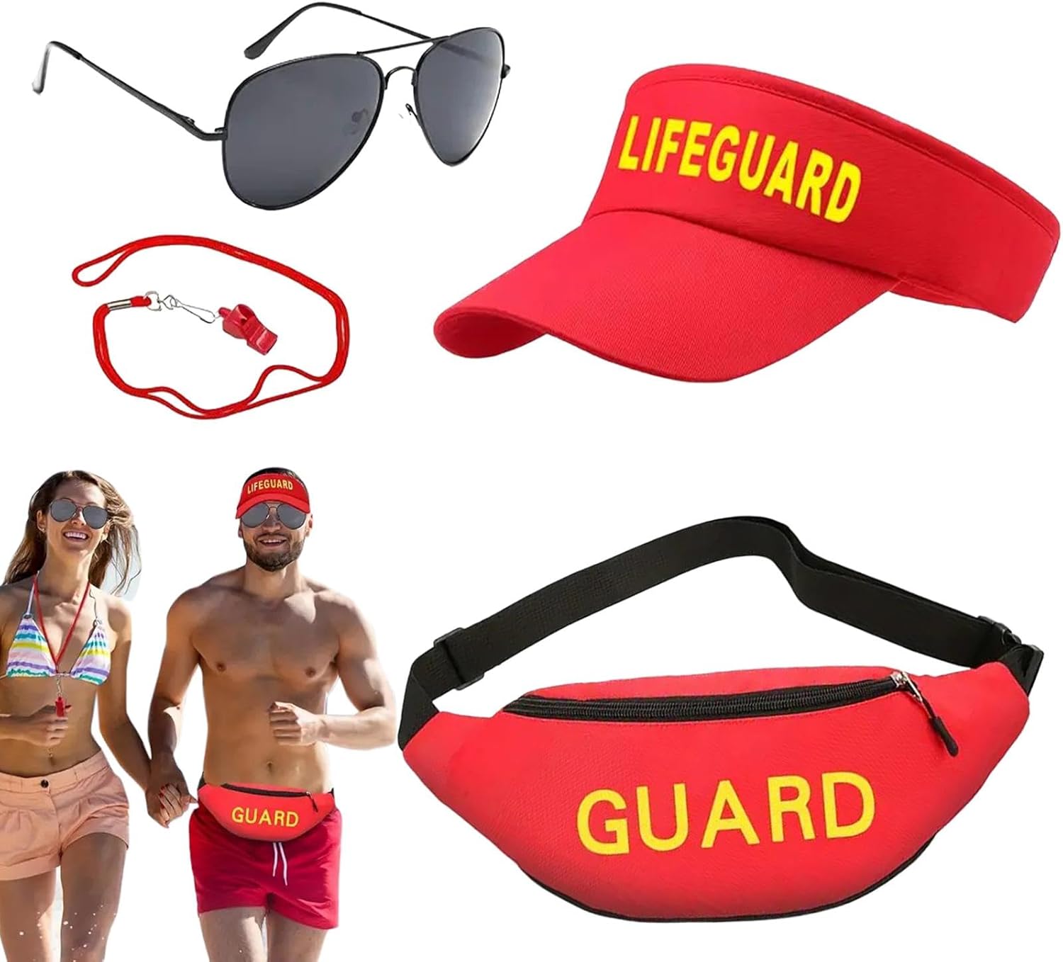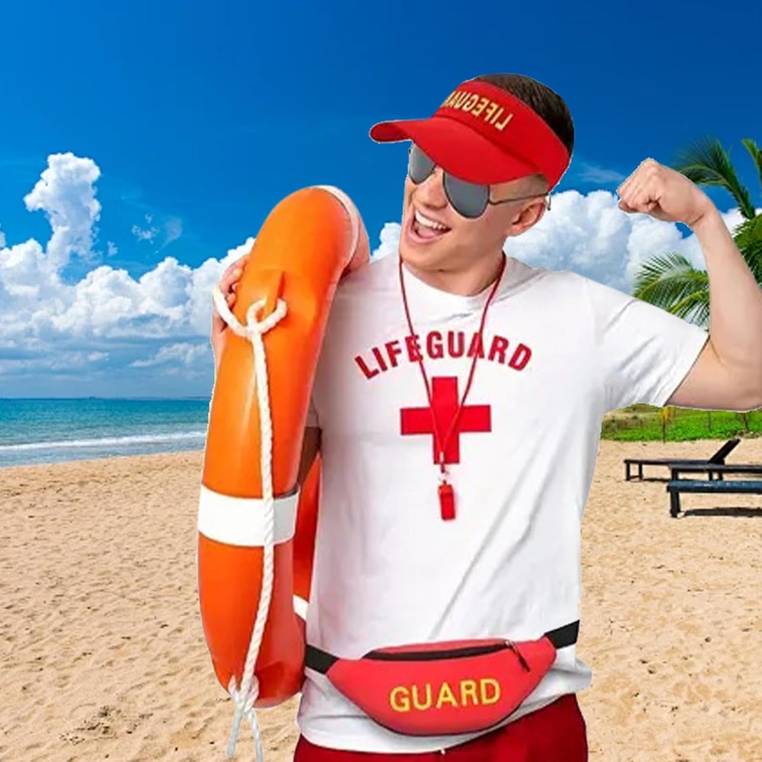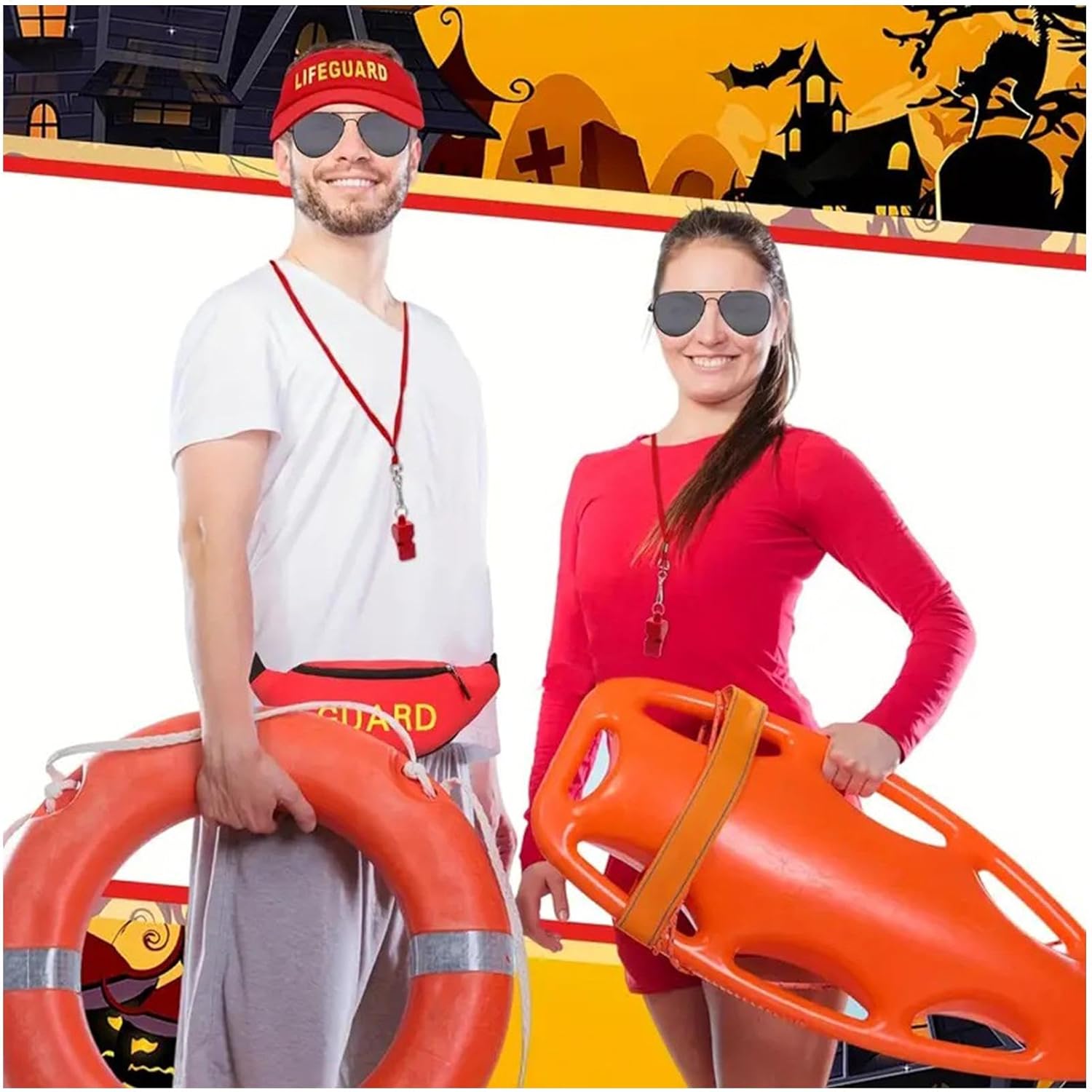 Progettato per un uso prolungato e con una varietà di metodi di utilizzo, questo costume è perfetto per feste a tema, feste in uniforme, feste di Halloween, feste di compleanno ed eventi di ruolo. Specifiche tecniche: Nome: Lifeguard Costume Materiale: cotone, poliestere. Dimensioni del prodotto: come da immagine. Peso: circa 230 g. Contenuto della confezione: 1 visiera parasole. 1 marsupio. 1* Occhiali da sole 1 fischietto