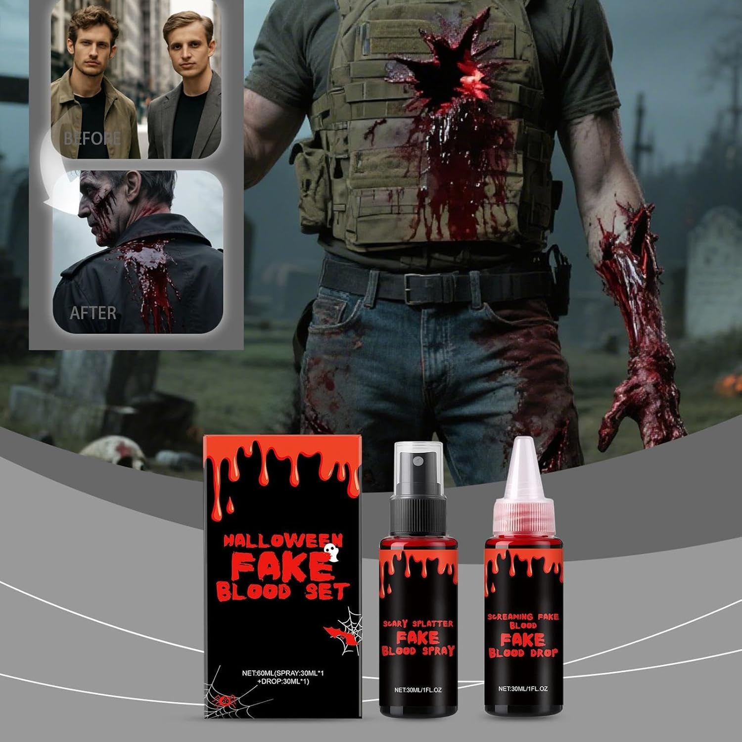 Soluzione Pratica: Sangue finto con formula acquosa delicata per uso temporaneo sicuro sui , offre una rimozione rapida e igienica senza necessità di detergenti aggressivi, ideale per un cleanup senza fatica Applicabilità Estesa: Migliora performance tematiche con alta compatibilità scenica, ideale per escape room Halloween e abbinamenti volto-costume, supportando creatività individuale e collaborazione di gruppo per esperienze seamless Effetto Schizzi Sgocciolanti: Crea shock visivo di schizzi sgocciolanti nei tuoi design di trucco horror, garantendo un'applicazione sicura per la pelle e fornendo un effetto sangue realistico attraverso una texture di sangue coagulato accuratamente realizzata Praticità d'Uso: L'applicatore spray intuitivo assicura una distribuzione senza sforzo del sangue finto, permettendo passaggi precisi per dettagli sottili o coperture ampie con controllo continuo, ideale per progetti artistici e eventi tematici con multiple persone coinvolte Multipli Stili di Trucco: Ottieni effetti sanguigni realistici e stratificabili con un set combinato -fluido, ideale per trucco tematico e costumi zombie vampiri, simulando sangue invecchiato per progetti creativi multiformi