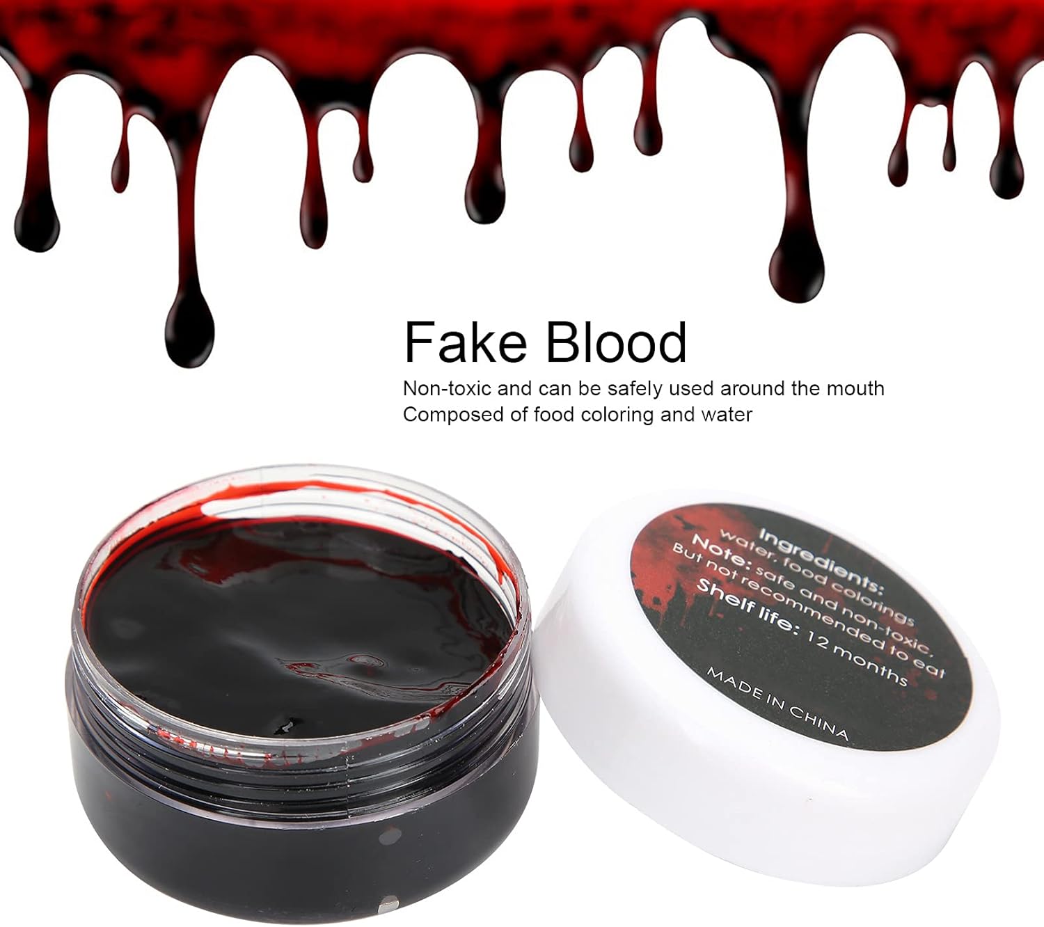 Crea un trucco spaventoso naturale e autentico. Presenta un colore rosso sangue incredibilmente vibrante che sembra la cosa reale. Non tossico, delicato sulla pelle, non irritante, ecologico, può essere applicato direttamente sulla pelle. Adatto per feste di Halloween, case infestate e ovunque per ricreare una scena horror. Non tossico e può essere tranquillamente utilizzato intorno alla bocca. Composto colorante alimentare e acqua. per feste di Halloween, cosplay, giochi di ruolo, carnevali, festival o effetti speciali di programmi TV.