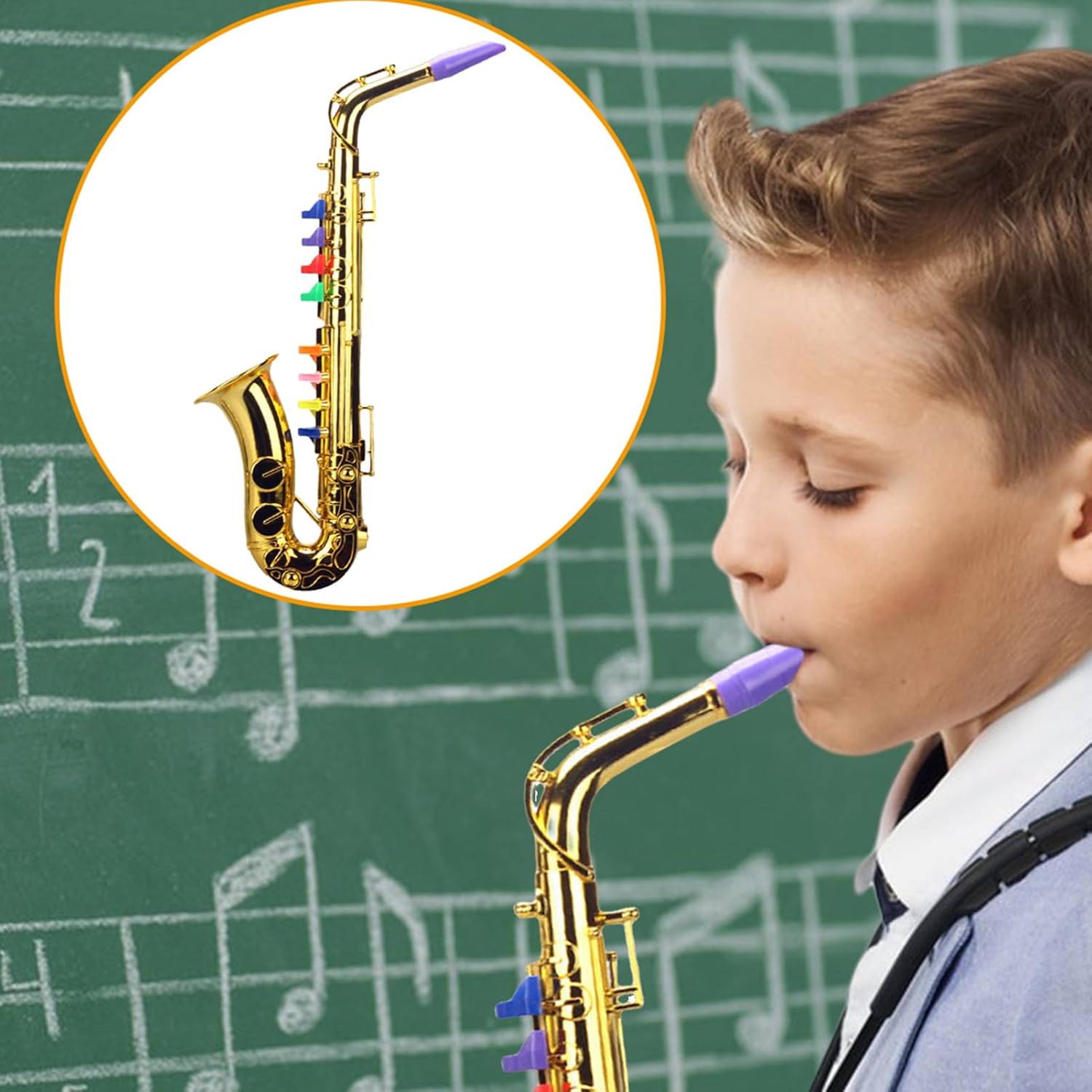 Abilità musicali migliorate: simulando posizioni chiave realistiche, il sassofono giocattolo promuove la sensibilità e la concentrazione quando si suonano toni diversi. Fornisce ai bambini un modo divertente per migliorare le proprie abilità musicali Combina l'istruzione con il divertimento: presentiamo il sassofono giocattolo per bambini con un design della posizione chiave che mira a sfide di gioco specifiche. L'approccio mirato aumenta la difficoltà di gioco e consente ai bambini di migliorare la coordinazione e la precisione delle mani, godendo idealmente di un'esperienza di gioco più professionale. Maggiore creatività: soddisfacendo le esigenze di gioco dei bambini e producendo suoni forti al volume appropriato, il sassofono giocattolo per bambini è perfetto per sviluppare le loro abilità musicali, sviluppare un senso di realizzazione e promuovere una maggiore fiducia in se stessi. Ampia gamma di applicazioni: Scopri la gioia della musica con il sassofono giocattolo per bambini. In grado di giocare, imparare e comunicare in vari ambienti, tra cui il legame genitore-figlio, la scuola materna e le lezioni di strumento. È perfetto per varie occasioni e ampiamente utilizzato. Belle dimensioni: questo sassofono giocattolo è perfetto per i giovani musicisti poiché è facile da trasportare e suonare ovunque. Con una dimensione compatta di 369,513 cm, i bambini possono portarlo ovunque e riporlo comodamente