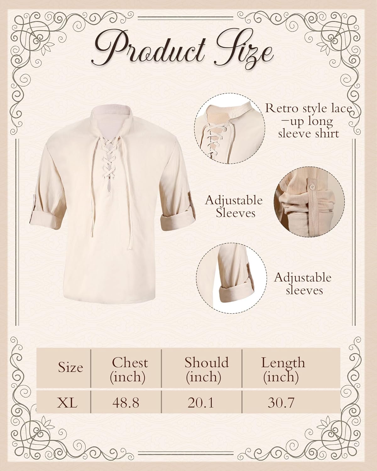 Caratteristiche: Torna indietro nel tempo e immergiti nell'atmosfera del periodo rinascimentale con il nostro set di costumi da cavaliere medievale da uomo meticolosamente progettato. Composto da una camicia vintage, pantaloni da uomo medievali e una cintura medievale, questo set riecheggia lo stile dei cavalieri offrendo allo stesso tempo un comfort moderno. Che si tratti di gite informali, festival, feste, matrimoni, discoteche, Natale, giorno di San Patrizio, Halloween o anche uno spettacolo in costume da pirata rinascimentale medievale, il set di costumi cosplay vichinghi da uomo si adatta a qualsiasi evento. Fornire una valida soluzione regalo per padri, mariti e fidanzati. Specifiche: Materiale: Camicia medievale: tessuto di cotone e lino Pantaloni rinascimentali: poliestere Cintura medievale: pelle PU artificiale Colore: Camicia medievale: kaki Pantaloni rinascimentali: neri Cintura medievale: marrone Taglia: XL Camicia medievale: circa 20,08 pollici/ 51 cm spalla, 48,82 pollici/ 124 cm circonferenza torace, 30,71 pollici/ 78 cm di lunghezza, 26,77 pollici/ 68 cm manica Pantaloni Rinascimento: circa 44,88 pollici/ 112 cm di lunghezza, 34,25 pollici/ 87 cm di vita, 51,57 pollici/ 131 cm di fianchi Cintura medievale: circa 64,96 pollici/ 165 cm La confezione include: 1 x camicia medievale 1 x pantaloni rinascimentali 1 x cintura medievale Note: Misurazione manuale, si prega di consentire lievi errori di dimensione. Il colore potrebbe presentare una leggera differenza a causa delle diverse visualizzazioni dello schermo.