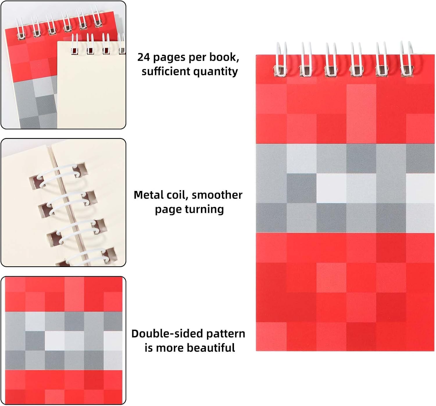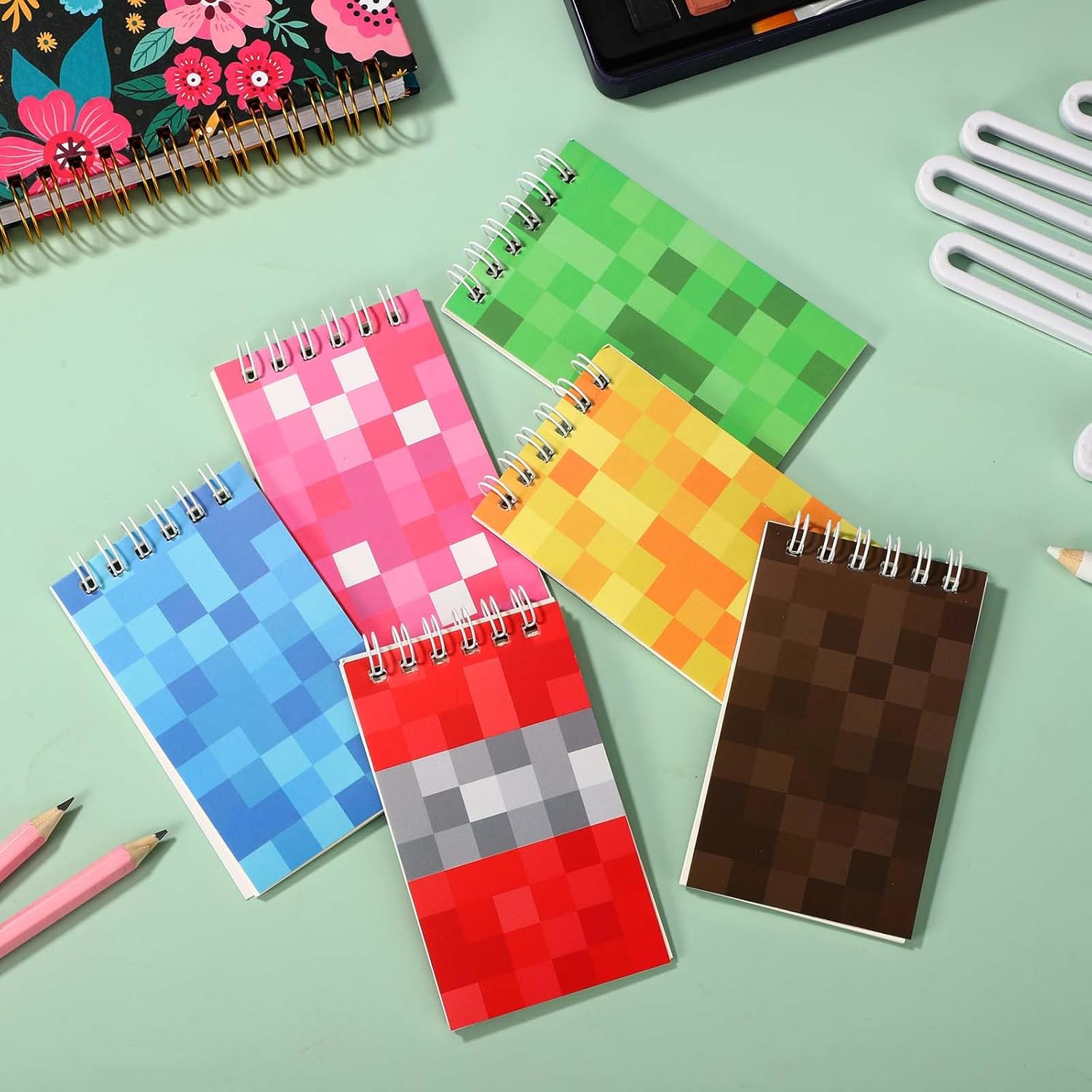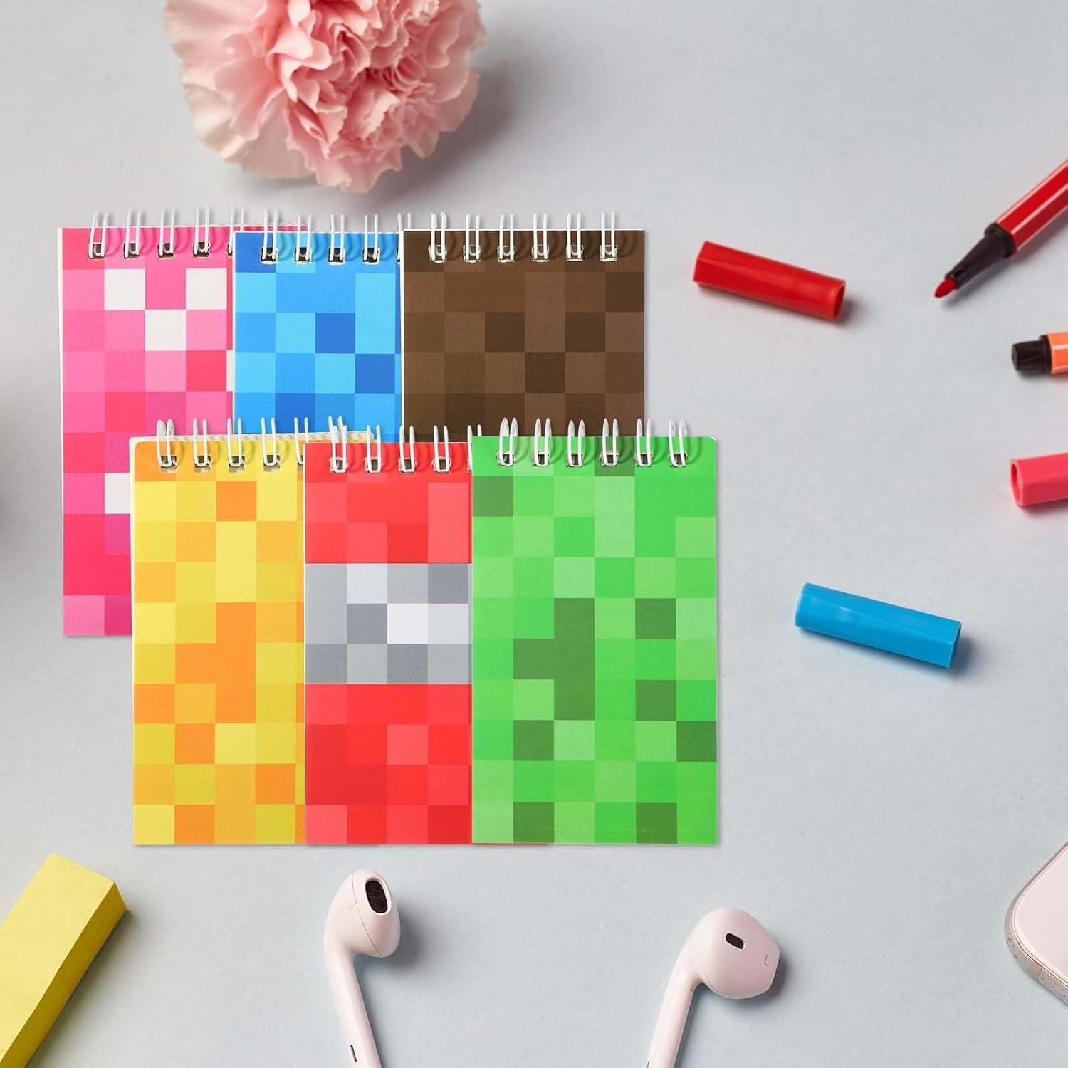Contenuto del pacchetto: riceverai 30 pezzi di mini blocchi colorati in 6 colori, 5 pezzo di ogni colore, ogni blocco note ha 24 pagine, quantità sufficiente per soddisfare l'uso e la sostituzione. Dimensioni e materiale: questi blocco note sono realizzati in carta e le dimensioni sono di circa 10x6 cm, dimensioni ridotte, convenienti per il trasporto a scuola, le feste o i viaggi, puoi registrare in qualsiasi momento e ovunque. Design divertente: stampato con motivi divertenti sulle copertine, con colori vivaci, ci sono 6 colori (verde, marrone, rosa, rosso, giallo, blu) che puoi scegliere, diversi colori possono anche aiutarti a distinguere diversi usi. Smooth Coil: il blocco note è progettato con bobina di metallo, la rotazione della pagina è più fluida e senza ritardo, che può ottenere una svolta di pagina rapida, in modo che le informazioni possano essere registrate senza indugio. Ampia applicazione: regalo di compleanno perfetto, premio in classe, riempitivo per borse o fornitura di insegnanti. Ottimo per la scrittura creativa, la presa di nota segreta o le cacce al tesoro a feste a tema ed eventi scolastici.