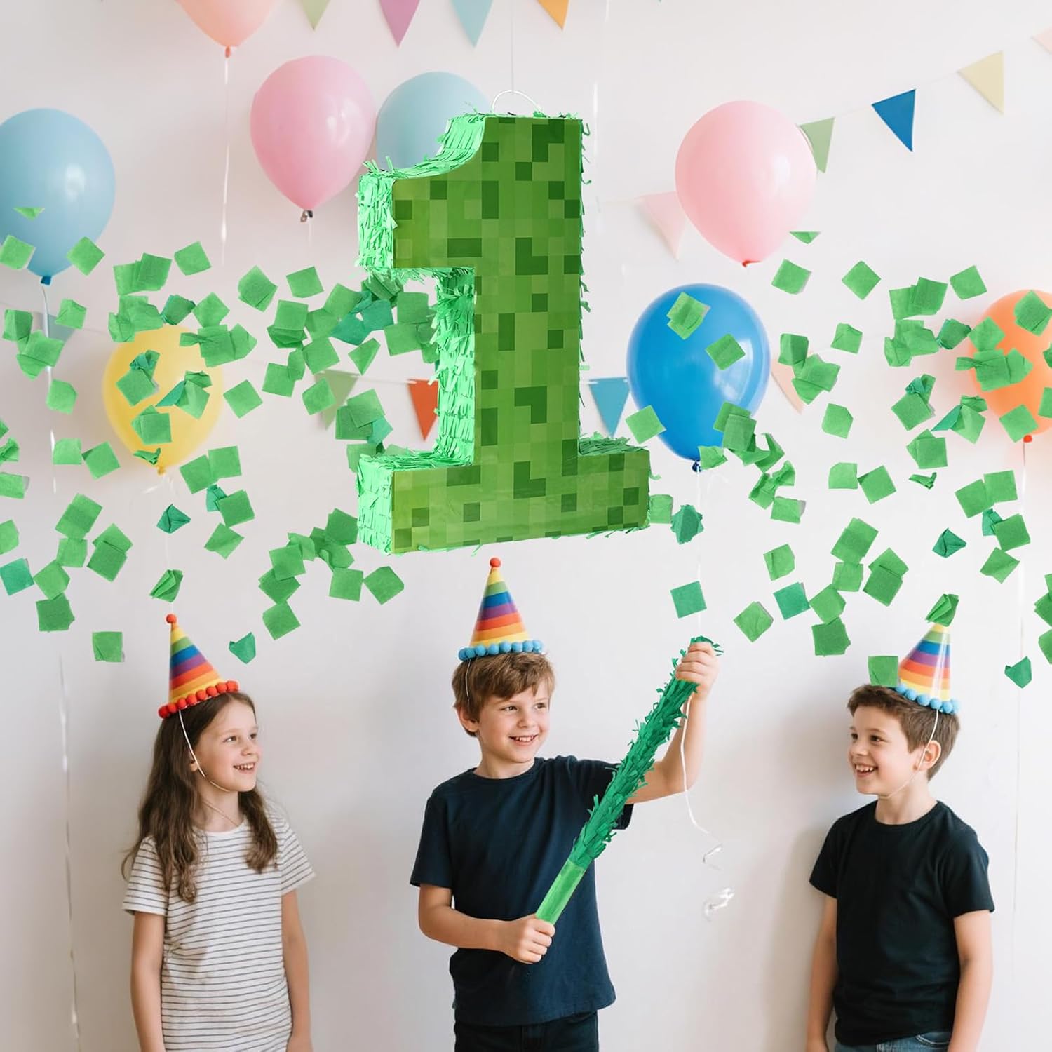 SAVITA Mini Piñata Pixel con Numeri, Bomboniera per Feste Compleanno con Pixel Verdi Benda Sugli Occhi Piñata di Coriandoli per Decorazioni Feste di Compleanno (1)