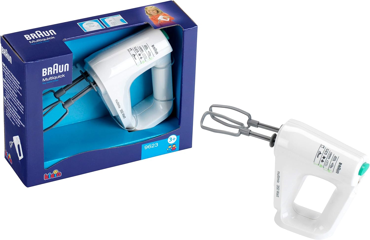 Potete fidarvi di questo mixer per bambini di alta qualità: nel collaudato design Braun è il gioiello della cucina da gioco. Il mixer giocattolo ha funzioni a misura di bambino, tra cui fruste rimovibili e un interruttore finto. Particolarmente divertenti sono le fruste rotanti, ovviamente sicure e pronte a fermarsi in qualsiasi momento non appena incontrano la minima resistenza. Con il grazioso mixer i bambini allenano le loro capacità motorie e la creatività e si divertono molto con i giochi di ruolo nella cucina dei bambini imitando mamma e papà Dimensioni: 21 cm x 13,5 cm x 4 cm I Adatto a bambini dai 3 anni in su I Batterie necessarie: 2 x R03-AAA - Non incluse