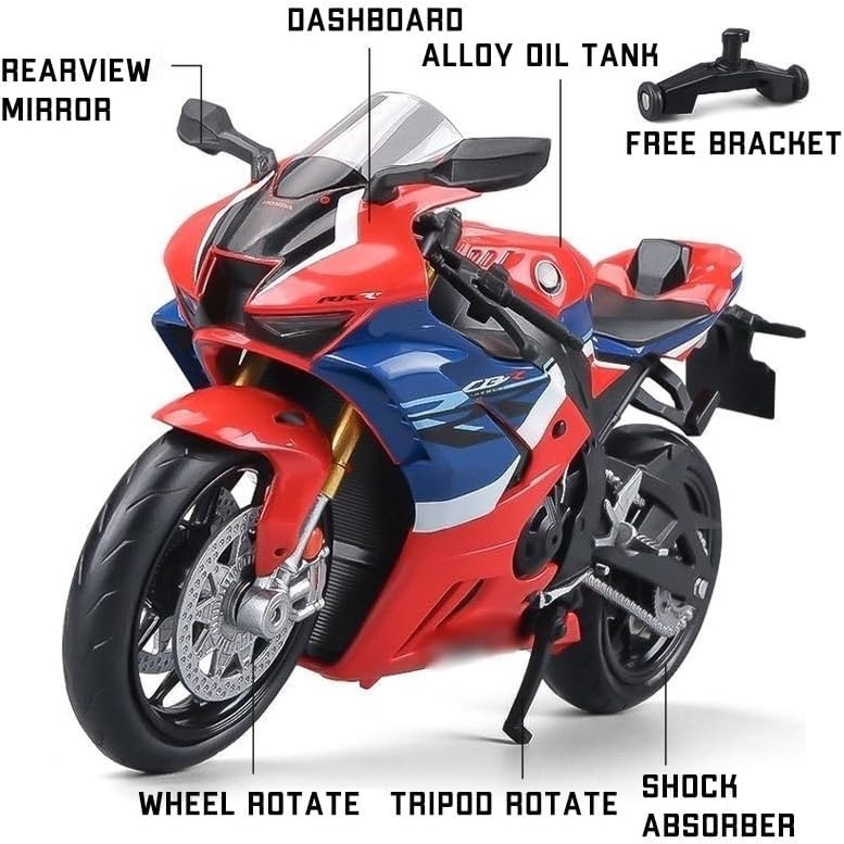 Materiale: le macchinine sono costituite da un guscio in lega, parti in plastica e ruote in gomma, che sono molto resistenti e non si rompono facilmente. Funzione: maniglia dell'auto del sollevatore della ruota anteriore, le ruote possono rotolare, assorbimento degli urti della ruota posteriore, supporto libero. Dimensioni: sono auto pressofuse in scala 1/12.(L) 17 cm x (L) 6,3 cm x (A) 9,4 cm L'eccellente abbinamento dei colori esalta l'aspetto estetico del modello di motocicletta, mentre i dettagli realistici e la simulazione proporzionale lo rendono perfetto per la decorazione di collezioni. Durante il processo produttivo, effettuiamo costantemente test per garantire la qualità del prodotto. Per qualsiasi domanda, non esitate a contattarci.