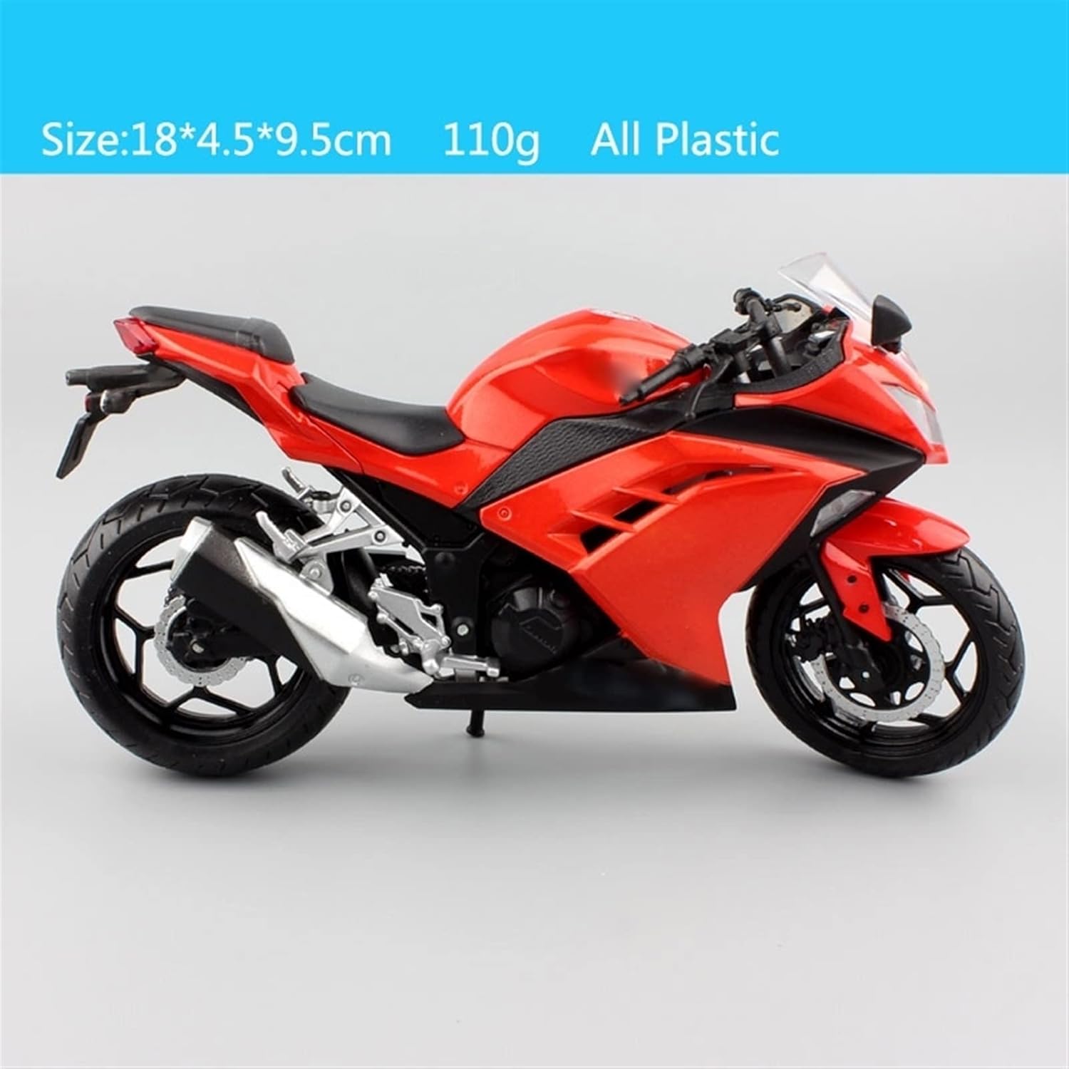 Può essere utilizzato come elemento decorativo o per creare un'atmosfera motociclistica realistica. Scala 1/12 Per Per Ninja 250 Moto da corsa giocattolo bici sportiva Giocattoli pressofusi e veicoli Giocattoli modelli rossi Materiale: la maggior parte delle parti sono in plastica Ruote girevoli flessibili Ammortizzatore lavorabile Cavalletto pieghevole e aperto Ruote anteriori sterzanti Scala: 1:12 Dimensioni: 18 * 4,5 * 9,5 cm Per Per Ninja 250 La struttura robusta è resistente alle cadute e durevole, consentendo un'esperienza di guida divertente.