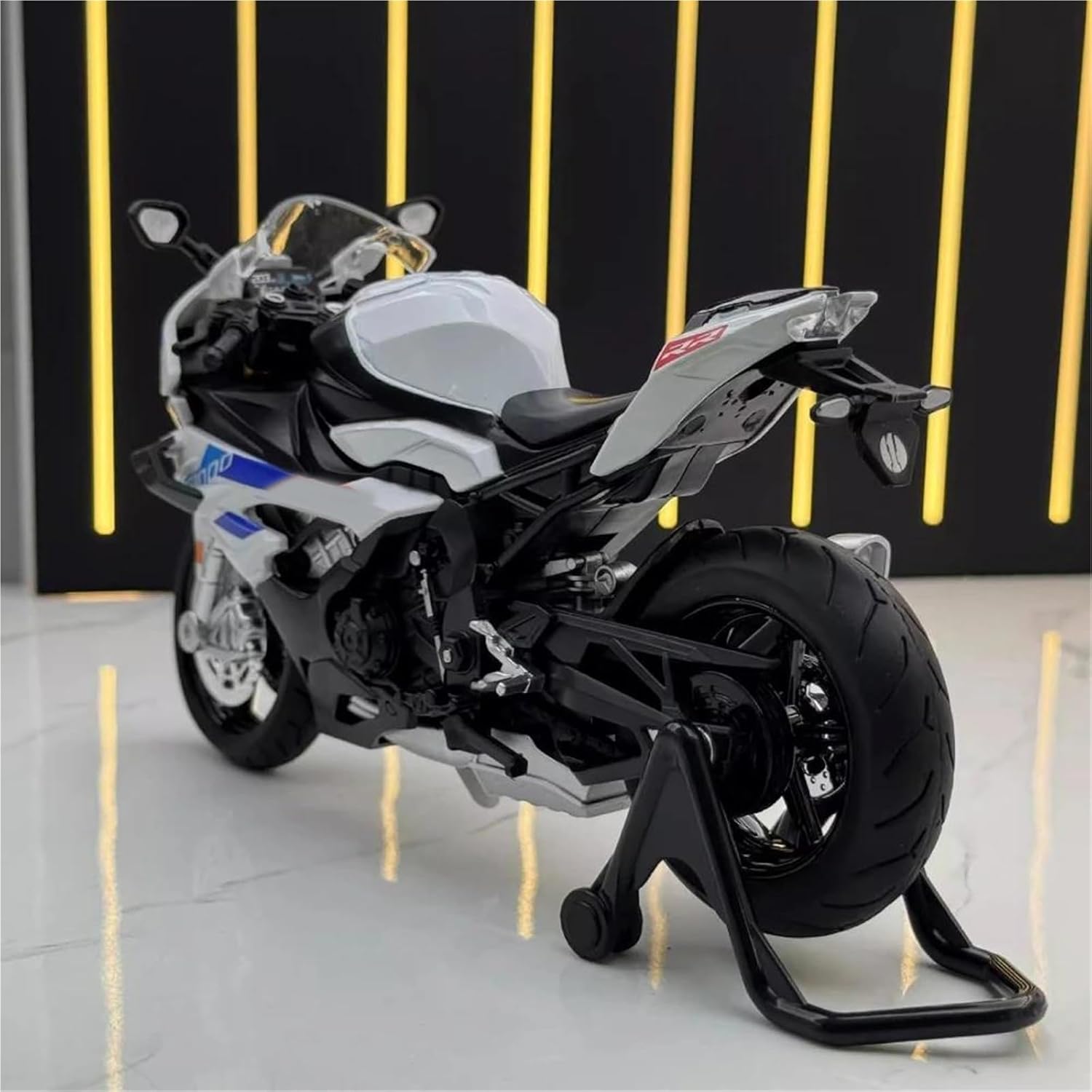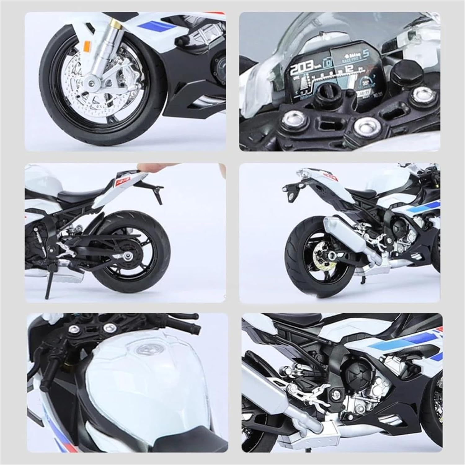 Modellini di moto giocattolo in scala 1:12 per S1000RR S 1000 RR Modello di auto di simulazione, simula l'effetto di una vera motocicletta, la maniglia della motocicletta può essere collegata alla ruota anteriore per le svolte a sinistra e a destra. Il treppiede può essere retratto e abbassato, dotato di una staffa per la ruota posteriore e può essere smontato liberamente. La combinazione di materiale in lega di zinco e materiale ABS è sia resistente che leggera, rendendo più facile giocare con i modelli di auto. Modello di moto La finitura liscia e senza sbavature e la vernice lucida e uniforme dimostrano una maestria artigianale eccezionale. Questo modello incarna lo stile di una motocicletta, soddisfacendo l'amore degli appassionati per i modelli nostalgici.