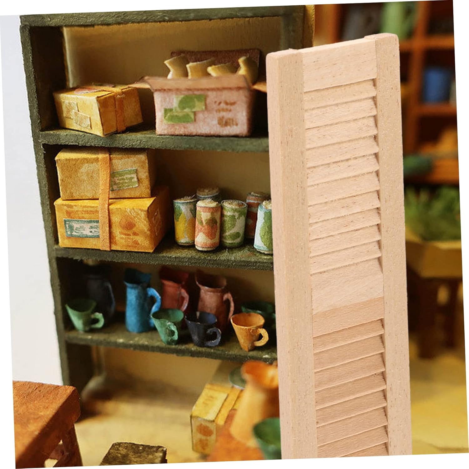 Tende a rullo in miniatura per case delle bambole: queste mini tapparelle hanno un design che le rende una camera da letto perfetta per le case delle bambole poiché sono infrangibili e altamente resistenti alla rottura. Modello di finestra con tapparella in miniatura per casa delle bambole: il modello di tapparella in miniatura con graffiti è una buona opportunità per offrire ai bambini un'esperienza di gioco pratica e migliorare le loro abilità sociali, mobili giocattolo per case delle bambole Accessori per mobili per casa delle bambole in miniatura: realizzati in materiale di legno di alta qualità e pratici da usare, la mini tenda è una bellissima decorazione per una mini casa, una finestra decorativa per una casa delle bambole. Persiane in miniatura: il modello di mini tenda a rullo in legno è perfetta per le case delle bambole o per la decorazione di micro paesaggi, mini tende a rullo per case delle bambole Persiane in miniatura per case delle bambole: questa bellissima tenda decorativa in miniatura per il modello interno della tua casa delle bambole in miniatura è perfetta in ogni angolo, mini accessori per casa delle bambole