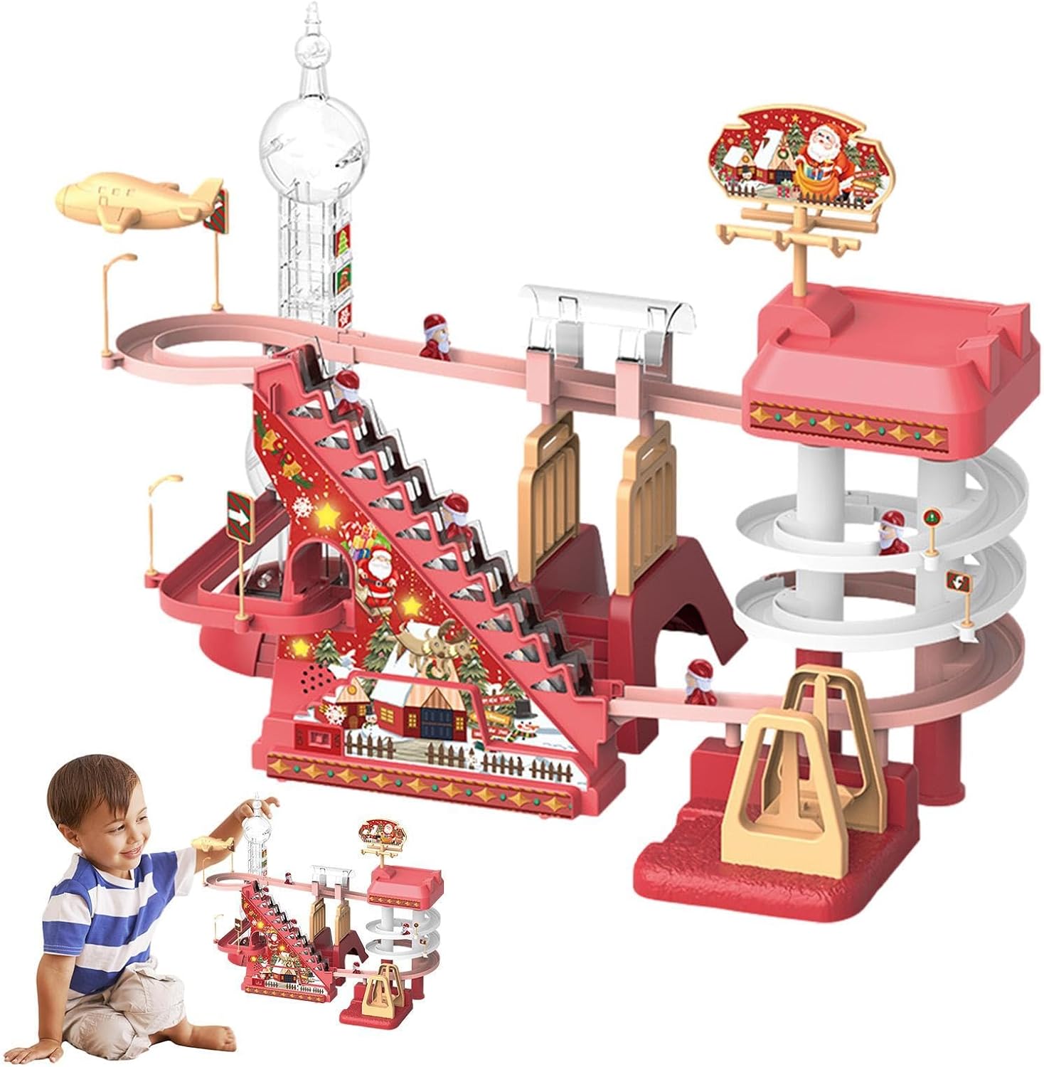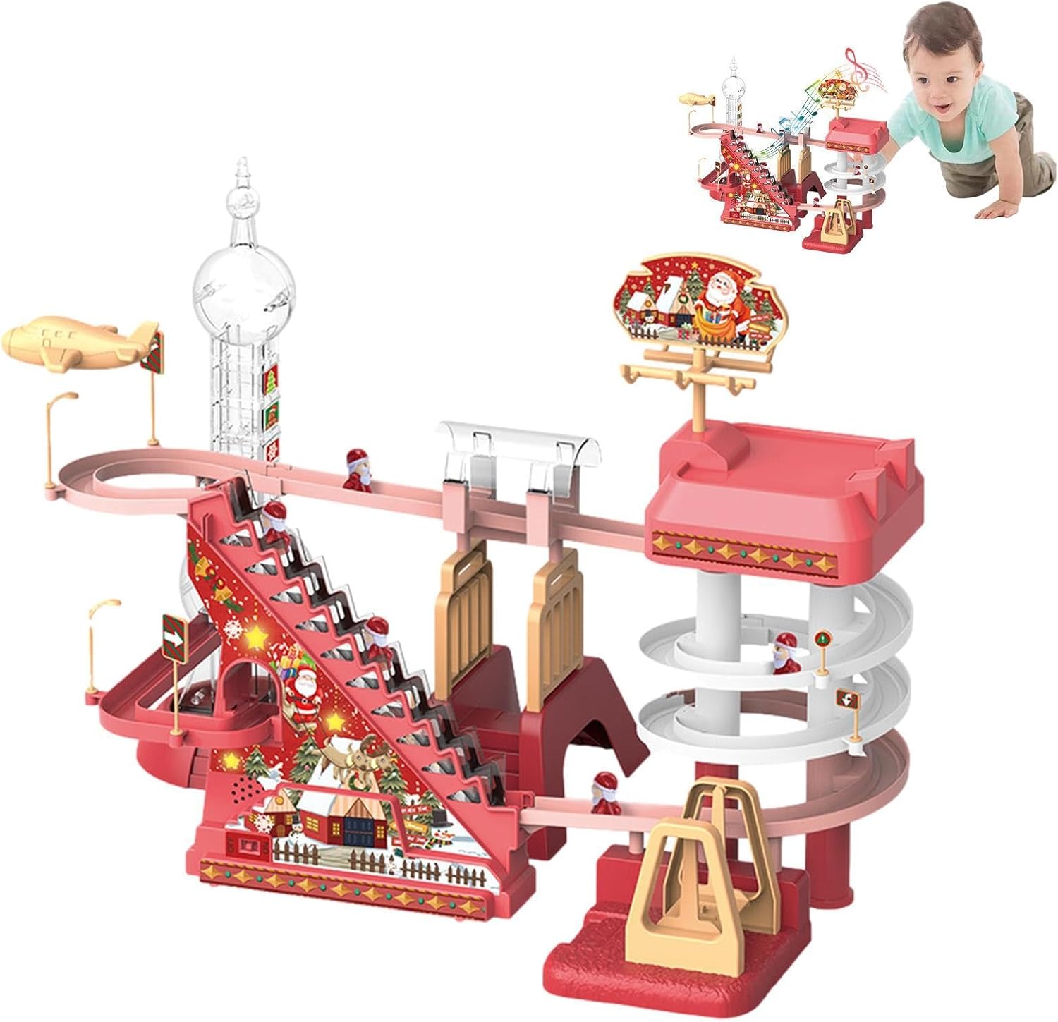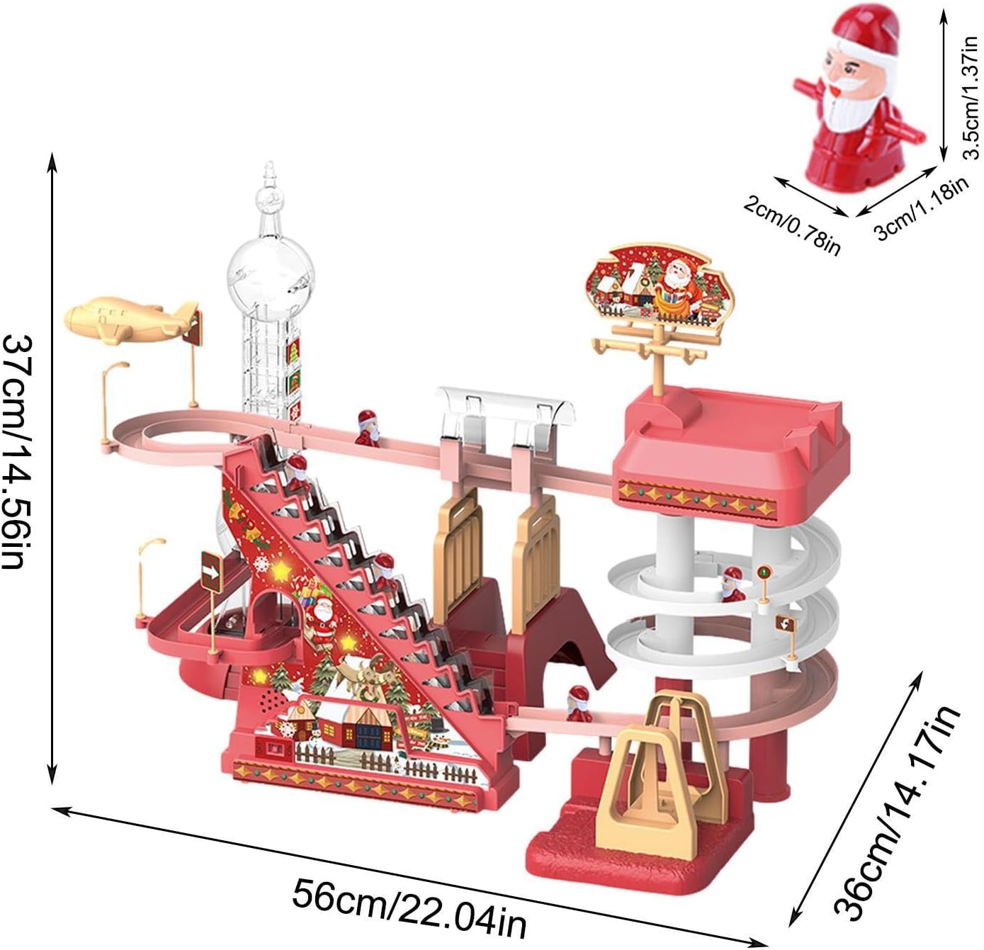 Sviluppo di competenze di base: il giocattolo automatico per le scale di Babbo Natale è un giocattolo interattivo che riproduce musica allegra mentre salgono le scale, aiutando i bambini a sviluppare la loro capacità di percezione uditiva, capacità di coordinazione occhio-mano e riconoscimento del colore. Materiale ABS: stai tranquillo sapendo che il nostro giocattolo automatico per scale da arrampicata di Babbo Natale protegge il tuo bambino con la sua struttura in materiale ABS liscio e senza bordi. Sicuro e affidabile, garantisce ore di gioco sicuro. Facile trasporto: con il giocattolo automatico per scale di Babbo Natale, festeggia il Natale in movimento senza problemi. Può essere smontato e installato senza sforzo e può essere trasportato facilmente ovunque lo spirito natalizio: prova la gioia di guardare il set da gioco le scale con melodie vivaci e scivolare giù con luci LED lampeggianti. Con la possibilità di attivare/disattivare la divertente colonna sonora e la musica allegra, questo giocattolo dal design interessante è facile da assemblare. Molteplici usi: versatile per ogni occasione, perfetto per decorazioni natalizie, compleanni, feste in giardino o divertimento al mare. Ideale per ragazzi e ragazze, regala loro un'esperienza indimenticabile.