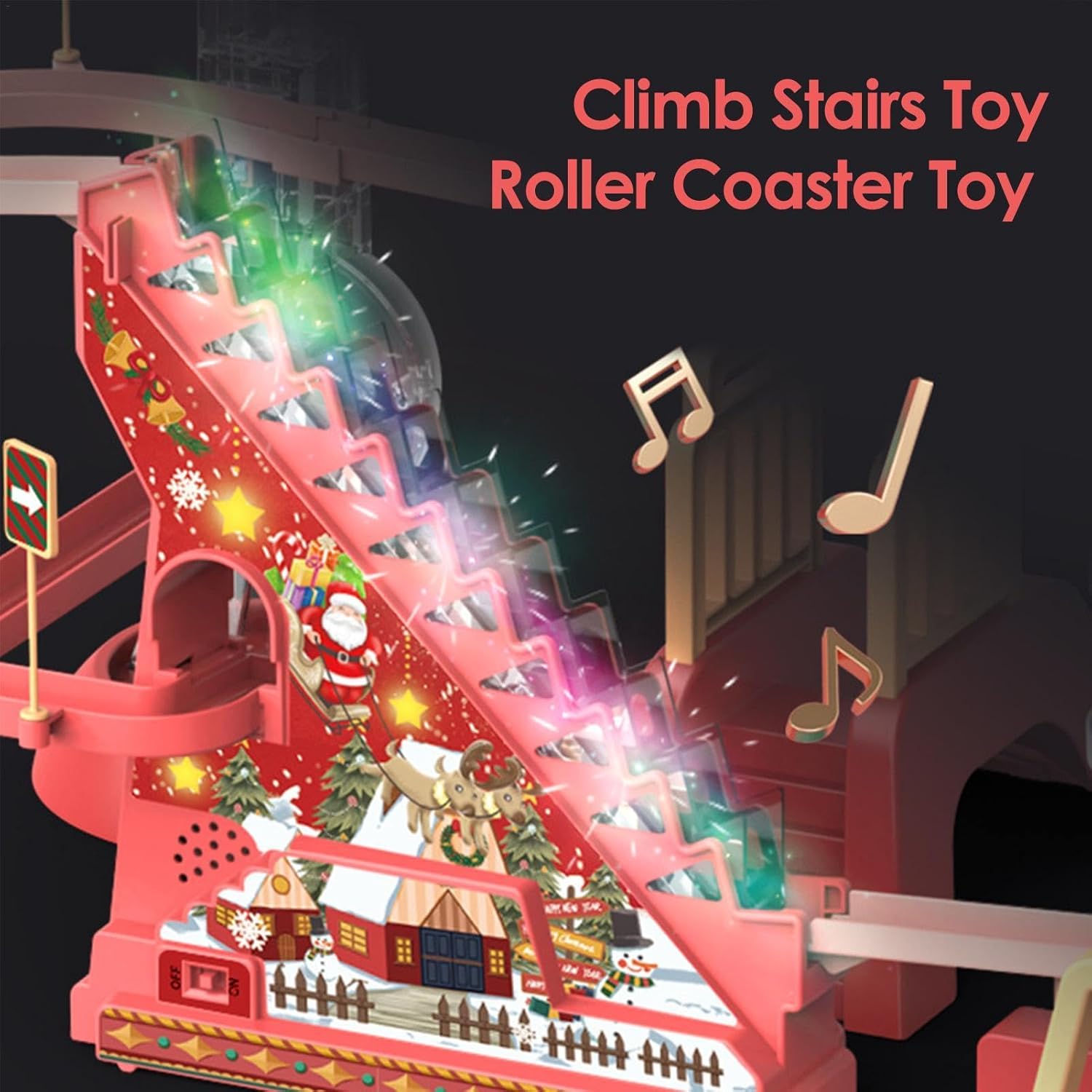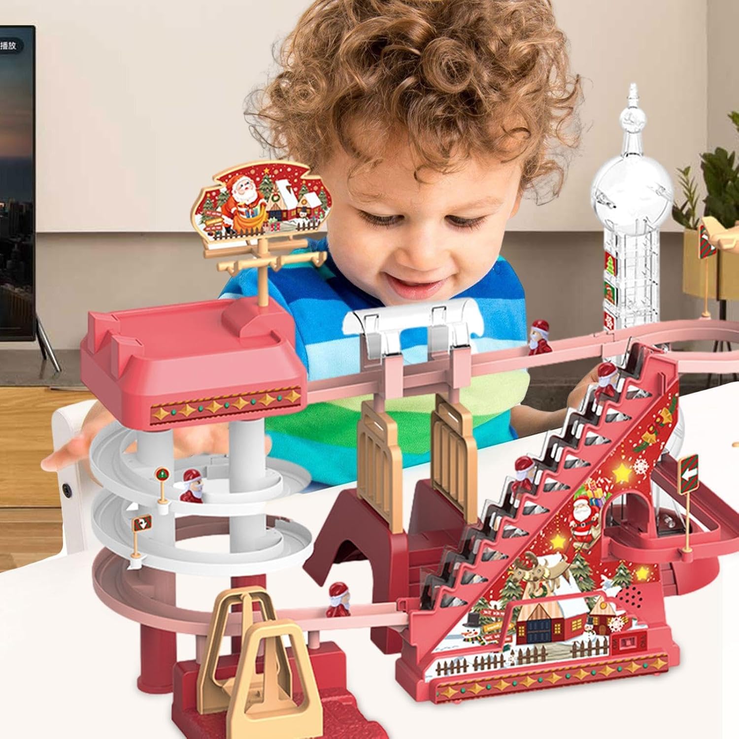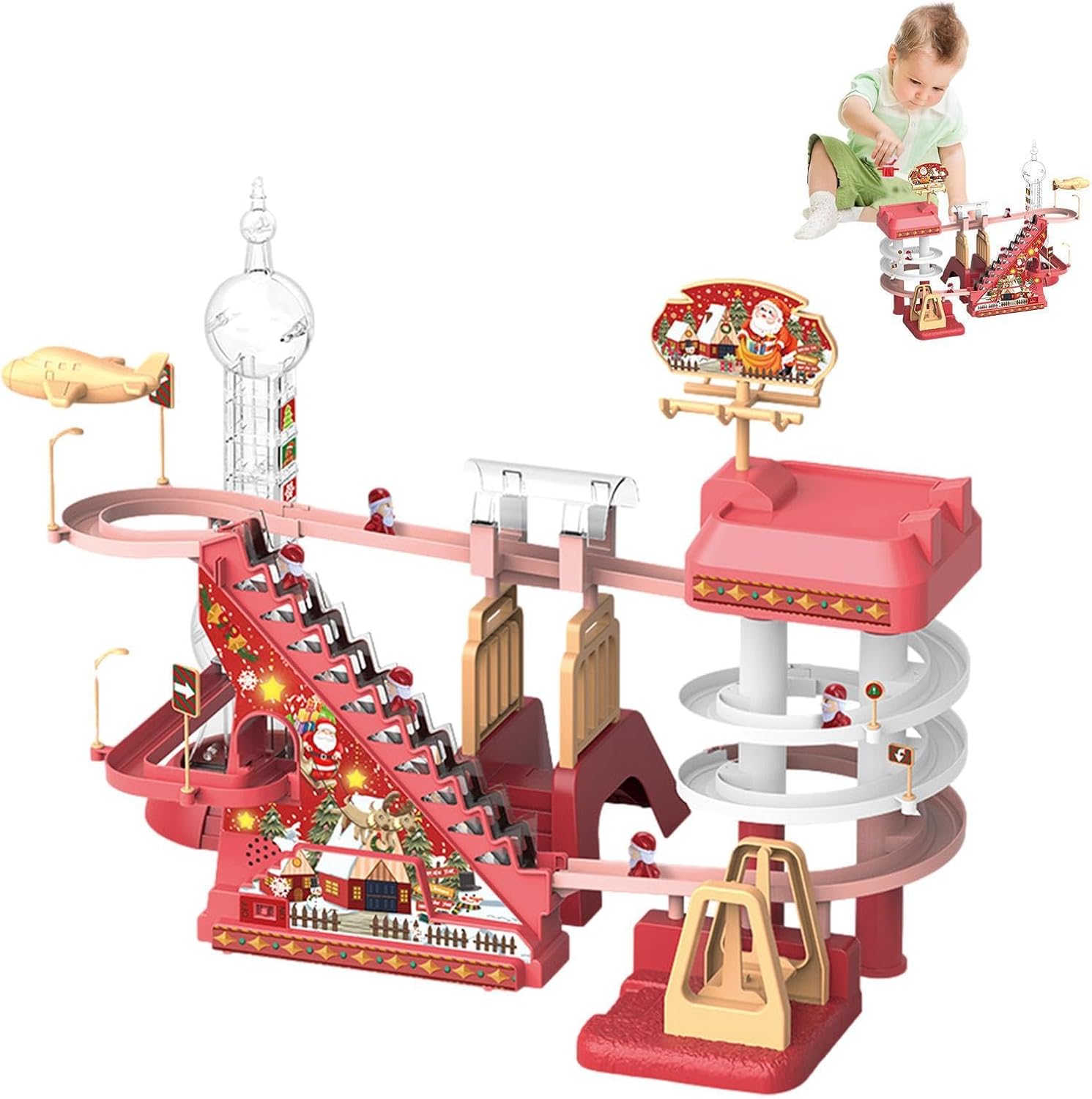 Sviluppo di competenze di base: il giocattolo automatico per le scale di Babbo Natale è un giocattolo interattivo che riproduce musica allegra mentre salgono le scale, aiutando i bambini a sviluppare la loro capacità di percezione uditiva, capacità di coordinazione occhio-mano e riconoscimento del colore. Materiale ABS: stai tranquillo sapendo che il nostro giocattolo automatico per scale da arrampicata di Babbo Natale protegge il tuo bambino con la sua struttura in materiale ABS liscio e senza bordi. Sicuro e affidabile, garantisce ore di gioco sicuro. Facile trasporto: con il giocattolo automatico per scale di Babbo Natale, festeggia il Natale in movimento senza problemi. Può essere smontato e installato senza sforzo e può essere trasportato facilmente ovunque lo spirito natalizio: prova la gioia di guardare il set da gioco le scale con melodie vivaci e scivolare giù con luci LED lampeggianti. Con la possibilità di attivare/disattivare la divertente colonna sonora e la musica allegra, questo giocattolo dal design interessante è facile da assemblare. Molteplici usi: versatile per ogni occasione, perfetto per decorazioni natalizie, compleanni, feste in giardino o divertimento al mare. Ideale per ragazzi e ragazze, regala loro un'esperienza indimenticabile.