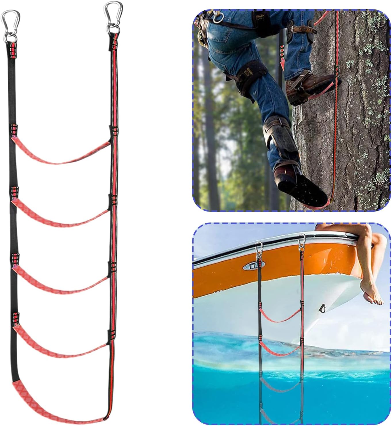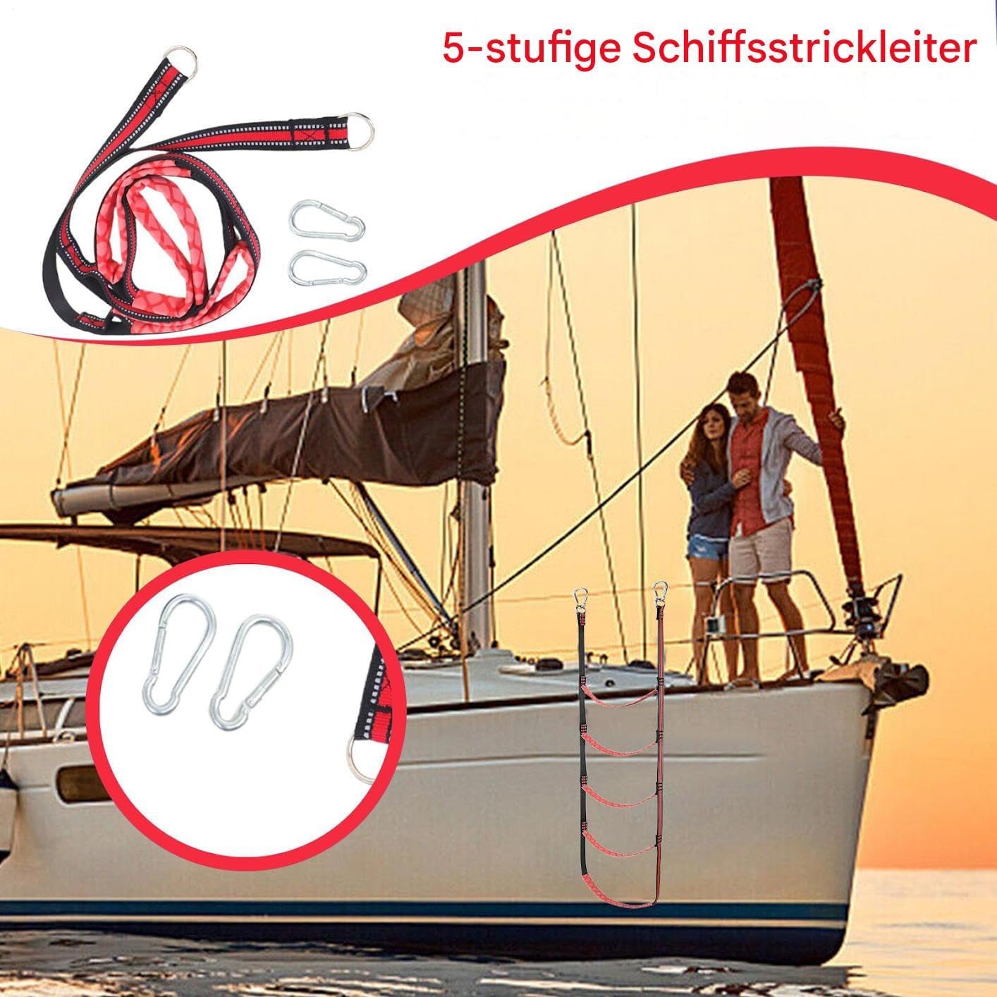 Risparmio di spazio e versatile: scala per barca pieghevole per un rapido stoccaggio e un posizionamento flessibile in varie posizioni, occupa uno spazio minimo e funziona in modo efficace senza strumenti aggiuntivi Caratteristiche pratiche: ideale per battute di pesca e attracco in acque poco profonde, supporta il galleggiamento senza sforzo e migliora le attività ricreative in acqua con una struttura robusta Facile accesso: ganci rinforzati e nessun passaggio complicato garantiscono un facile fissaggio, mentre il sistema di cinghie regolabili consente un posizionamento personalizzabile per prestazioni migliori Varietà di materiali: realizzato con materiali robusti per flessibilità e stabilità. Si adatta in modo sicuro alla maggior parte dei modelli di barche e consente un imbarco sicuro in vari ambienti grazie alla compatibilità ottimale. Elevata capacità di carico: la sofisticata tecnologia di tessitura multistrato riduce l'abrasione del materiale e resiste a carichi di pressione costanti. I motivi antiscivolo integrati garantiscono un'entrata e un'uscita sicure a lungo termine dalla barca.