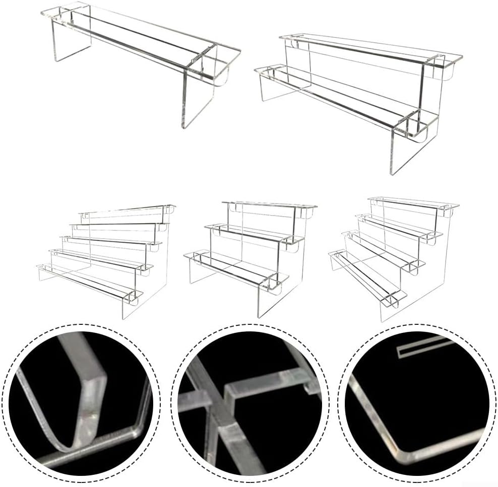 Materiale trasparente: il supporto acrilico è realizzato in acrilico trasparente medio che mostra un aspetto luminoso e trasparente Inoltre è robusto idrorepellente e assicura un'applicazione per mostre o vetrine di lunga durata Design multiuso, questo espositore in acrilico serve a vari scopi È adatto per esporre una vasta gamma di articoli essenziali come figure da collezione unghie rossetti cupcake giocattoli orecchini anelli gioielli e figurine di bottiglie di olio bambole extra Speciale tocco visivo per il tuo desktop, non solo organizza i tuoi oggetti, ma anche un elemento aggiuntivo