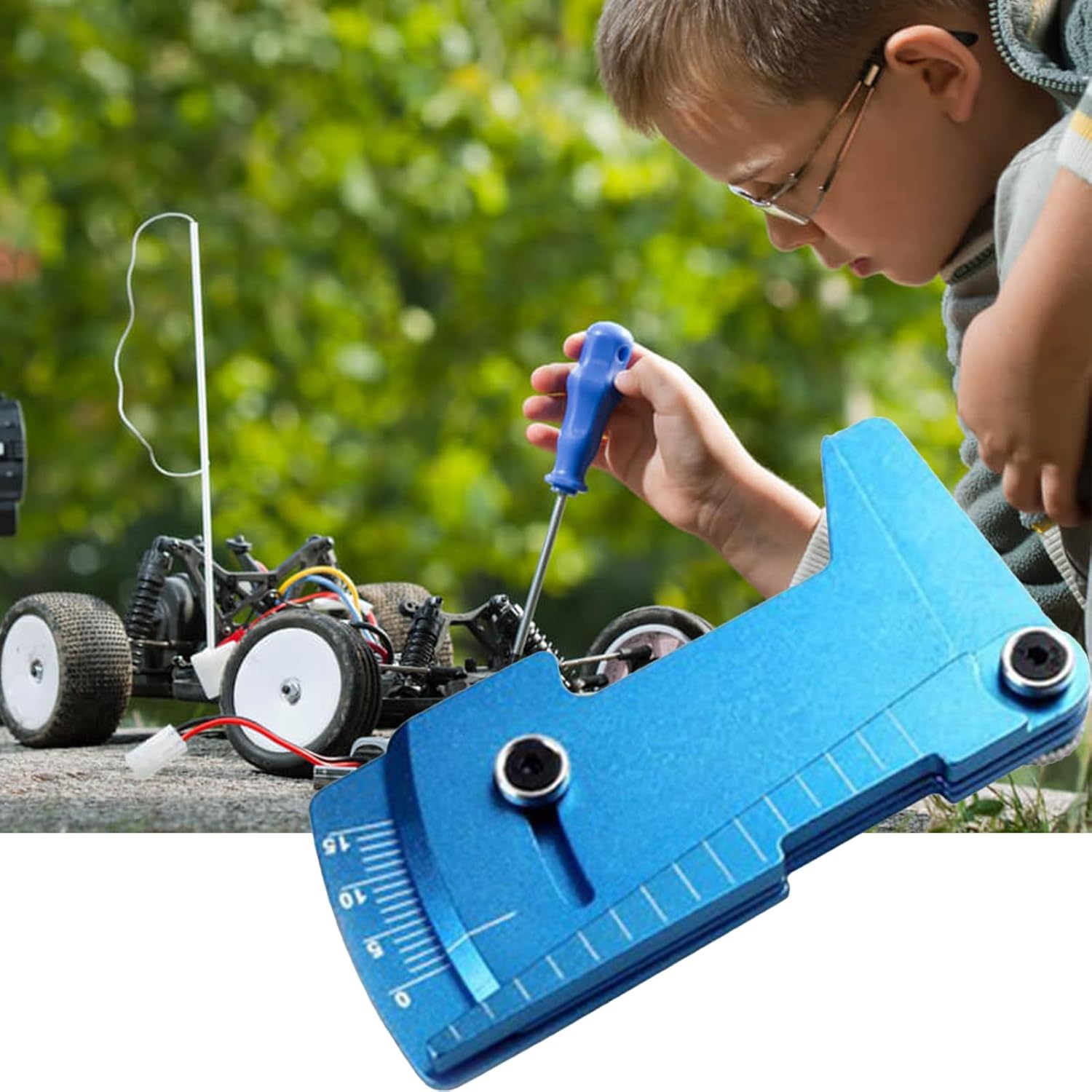 Modernizza la configurazione RC: semplifica la configurazione della tua auto con facilità utilizzando il meccanismo di misurazione integrato che regola con precisione e senza sforzo l'altezza e l'angolo delle ruote della tua auto RC per ottenere risultati precisi e affidabili ogni volta Progettato per durare: il righello per auto RC garantisce precisione con un'eccellente lavorazione, garantendo durata e longevità attraverso un accurato assemblaggio e un'accurata lavorazione Design adatto ai viaggi: con il pratico righello per auto RC hai sempre un righello a portata di mano. Conservalo nella cassetta degli attrezzi o nel veicolo e approfitta del suo design portatile e facile da trasportare. Prestazioni affidabili: grazie alla sua struttura robusta, questo righello per auto RC garantisce prestazioni stabili su varie superfici, mentre il suo design resistente all'abrasione garantisce un uso duraturo. Ampia applicazione: ottieni prestazioni precise e stabilità con il misuratore di altezza per pneumatici RC Car Ruler, adatto per un'ampia gamma di auto e camion RC su strada per un uso versatile.