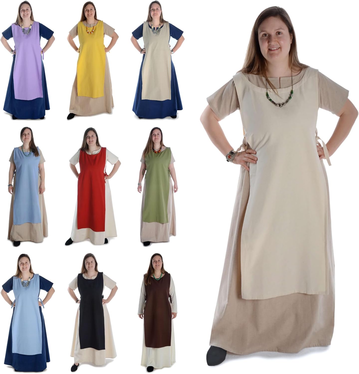 Copertura semplice (indumento) con lacci laterali. Lo scapolare è realizzato in cotone, lavabile in lavatrice a 40°C e disponibile nei colori beige, bianco, nero, verde, verde chiaro, rosso, azzurro, viola, marrone, marrone chiaro e canapa. Lo scapolare è disponibile nelle taglie S/M e L/XL. Solo lo scapolare viene consegnato senza accessori. Materiale: questo indumento medievale è realizzato in autentico tessuto naturale. Il puro cotone è molto comodo da indossare e l'uso di materiali naturali è caratteristico dell'epoca medievale. Inoltre, il robusto cotone intrecciato con struttura in lino garantisce la resistenza e la durata del capo. Istruzioni per il lavaggio: I nostri vantaggi: Cuciture pulite. Ampia selezione Sviluppato in Baviera, prodotto eticamente in Nepal, venduto in tutto il mondo.