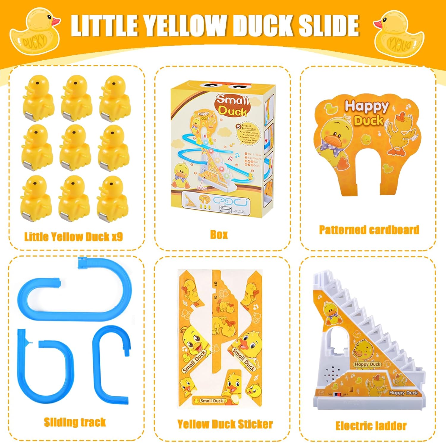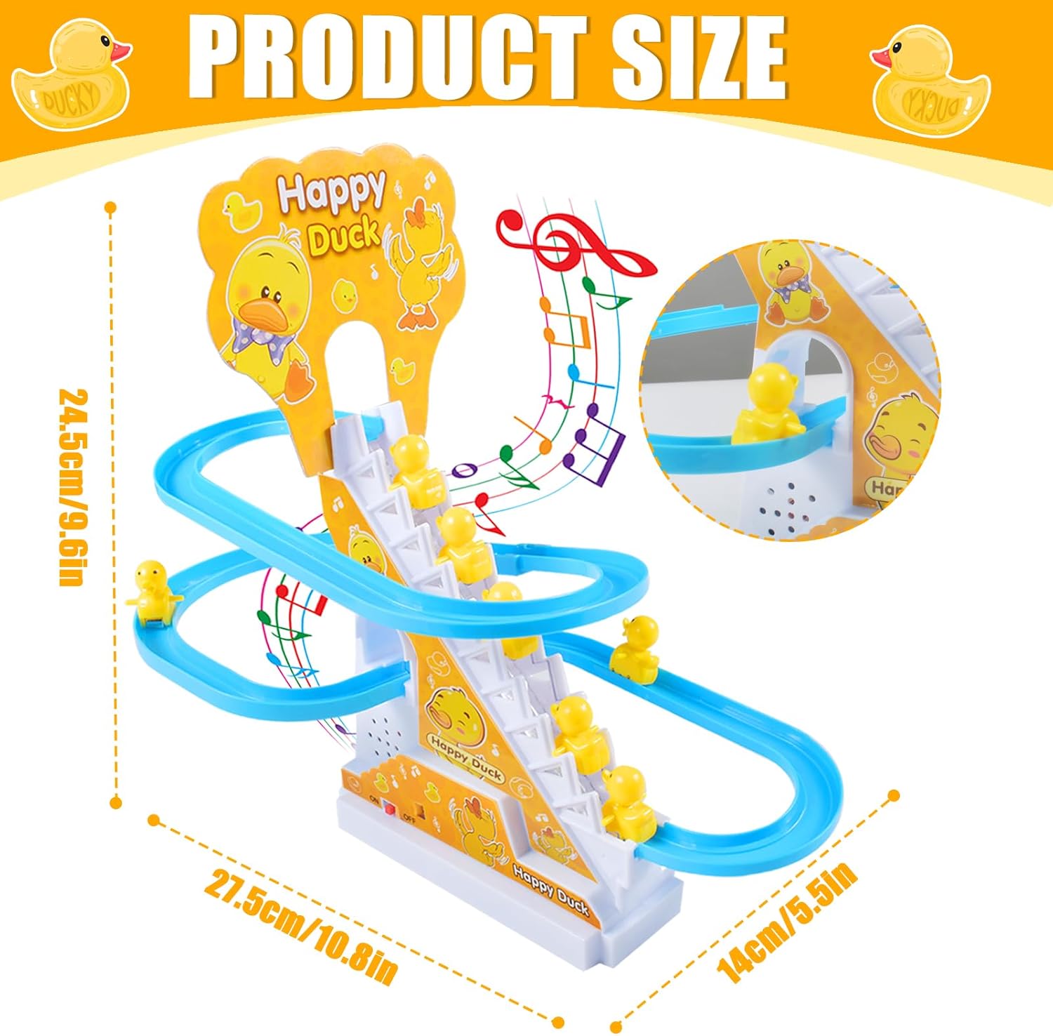 ✨【Sicuro e durevole】: il nostro giocattolo è realizzato in materiale ABS ecologico e resistente, garantendo la sicurezza dei bambini durante il gioco. Con tutte le parti arrotondate e lisce senza spigoli vivi, i genitori possono stare tranquilli sapendo che il loro bambino sta giocando con un giocattolo sicuro e affidabile. ✨【Design estetico】: i nostri simpatici scivoli gialli sono completamente assemblati senza ammaccature o scanalature, ogni nodo è perfettamente integrato e liscio senza ammaccature o scanalature, in modo che il maialino non rimanga bloccato durante lo scorrimento. ✨【Giocattolo Scale Anatre】: Il nostro gioco della scala viene fornito con luci LED lampeggianti, canzoni divertenti e musica allegra. Le simpatiche anatre gialle salgono le scale e scivolano sullo scivolo, suonando belle melodie, creando un'atmosfera interessante. ✨【Facile da installare】: Il nostro simpatico Little Yellow Duck giocattolo è facile da installare. Basta posizionare insieme le tracce corrispondenti ai cartellini numerici, inserire il cartone, inserire la batteria, infine accendere l'interruttore, inserire l'anatra, e si può iniziare a giocare! ✨【Regalo perfetto】: come una scelta regalo perfetta per occasioni come la stagione scolastica, Halloween, compleanni o Natale, il nostro set di montagne russe combina divertimento e apprendimento. I bambini si divertiranno a costruire e giocare con questo giocattolo, sviluppando abilità preziose divertendosi.