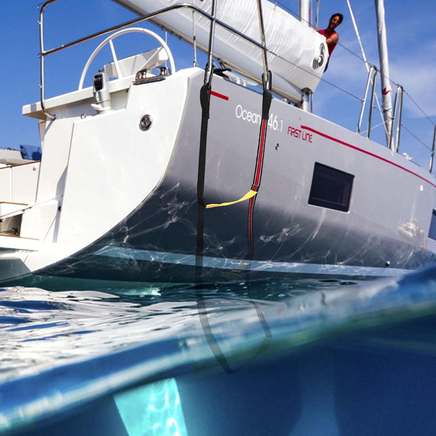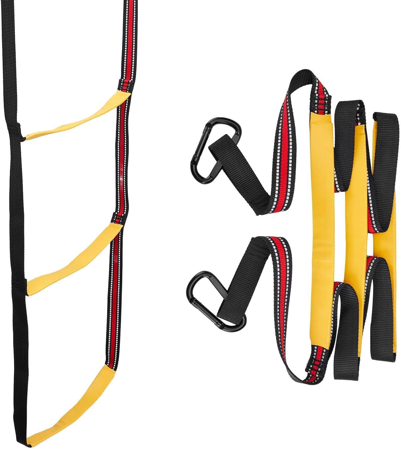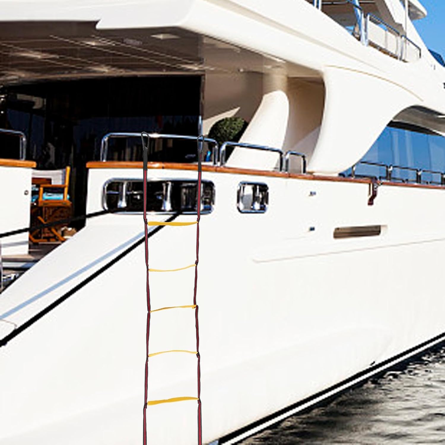 【Sicurezza stabile】 La scala a corda per barche è dotata di gradini antiscivolo per offrire una solida sicurezza durante l'uso. La scala della barca presenta un design aggiornato e facile da montare. 2 ganci ad alta resistenza: 2 ganci in acciaio inox ad alta resistenza garantiscono sicurezza. La scala di corda per barche può essere facilmente ripiegata e riposta quando non in uso, il che è comodo e veloce. Design con strisce riflettenti: la scala a maglia marina è dotata di strisce riflettenti, progettate per un uso sicuro di notte. Per i giunti, l'acciaio inossidabile viene utilizzato per prolungare la durata. Facile da usare: non è necessario alcun attrezzo per configurarlo. Basta piegarlo per riporlo quando non in uso. La scaletta può essere aperta in pochi secondi con i 2 ganci speciali. Ampia applicazione: il caricatore per corda è ideale per gommoni, kayak, jet ski e canoe. Non solo può essere utilizzato con una scala di barca, ma può anche essere utilizzato per aggiungere ulteriori gradini a qualsiasi scala esistente.