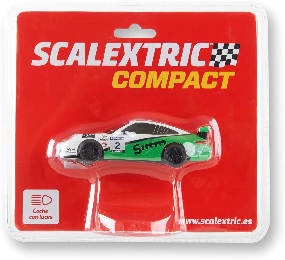 Auto Slot per circuiti Scalextric Compact: auto scala 1:43 in finiture e disegni attraenti. Goditi la corsa con la tua auto preferita. Splendida SCX Porsche 911 GT3 - Simm in scala 1/43: Ricreato con una finitura realistica. È il giocattolo ideale per incoraggiare l'interattività genitore-figlio, mentre questi ultimi imparano giocando. Acquista tutti gli accessori necessari per una perfetta manutenzione. Acquista le tue guide per trecce per mantenere la tua auto sempre a punto. Un regalo perfetto per compleanni, Natale, anniversari o qualsiasi occasione speciale, per bambini e adulti. Goditi l'esperienza scalextric con i tuoi figli e descrivi il loro mondo emozionante.