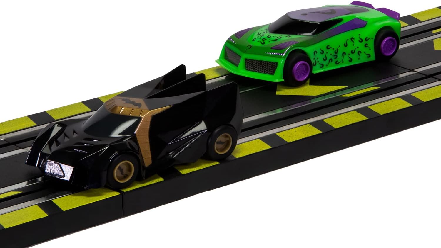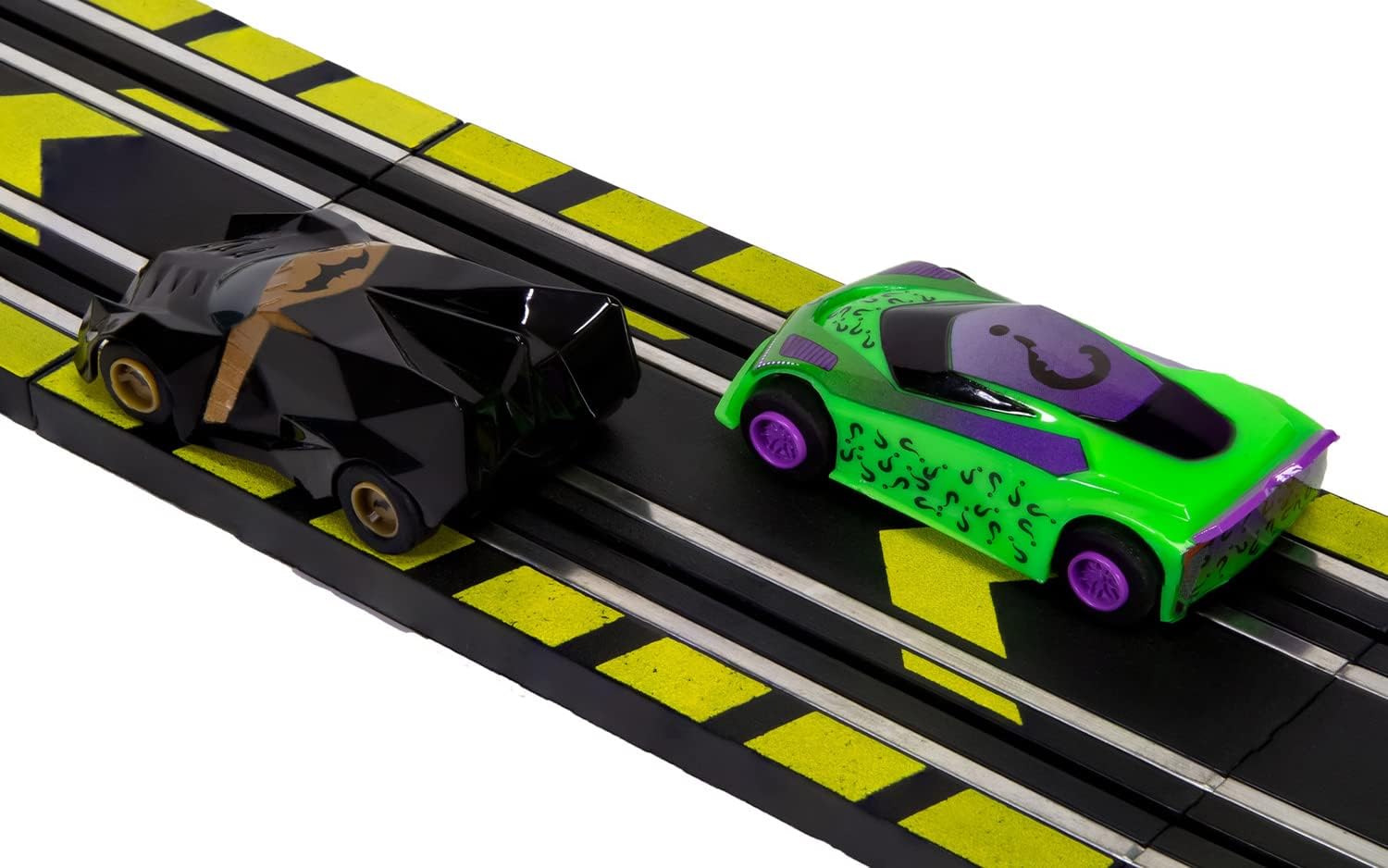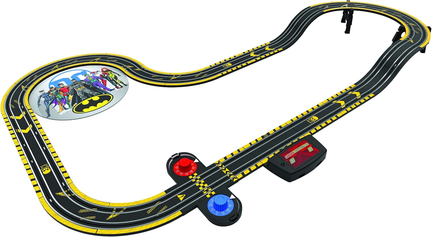 Micro scalextric adatto per i piloti giovani micro scalextric in scala 1:64 offre tutte le emozioni e i brividi delle corse di slot car giocattolo in dimensioni compatte, il che lo rende l'idea regalo ottima per i bambini di età ai 4 anni Batman contro l'enigmista - set da corsa a batteria: salta al posto di guida per un epico duello con il set da corsa a batteria batman contro l’enigmista, il destino di gotham city è nelle tue mani: il giustiziere della notte affronta il principe dei puzzle in questo set micro scalextric ricco di azione,, riuscirà il veloce veicolo di batman a superare l'enigmatico mezzo dell'enigmista? questo set non è una semplice gara, ma una battaglia strategica di velocità e ingegno, sistema la pista e preparati a uno scontro che determinerà il vero protettore di gotham Plug & play: la gamma micro scalextric è dotata di tecnologia plug & play che la rende rapida e semplice da montare e smontare, questo set richiede uno spazio di stoccaggio minimo e, una volta montato, copre un'area di 91 x 131 cm per una lunghezza del binario di 355 cm Scegli il tuo circuito: con 3,5 metri di pista e l'opzione di 9 diversi layout, la scelta è tua, questo set è dotato di una rampa e di un pezzo di pista con contagiri e trappola esplosiva, con i regolatori di velocità regolabili, sperimentate un'ampia selezione di tracciati da cardiopalma con il o del regolatore manuale di limitazione della velocità per una facile regolazione della velocità Contenuto della confezione: 1 auto di batman, 1 auto dell'enigmista, 1 set di binari da 3,5 m, 1 trappola con contagiri, 1 base di alimentazione a batteria, batterie non incluse, 2 controller cablati con limitazione della velocità e 1 grafica a bordo pista, questo set è il regalo ottimo per bambini e bambine dai 4 anni in su