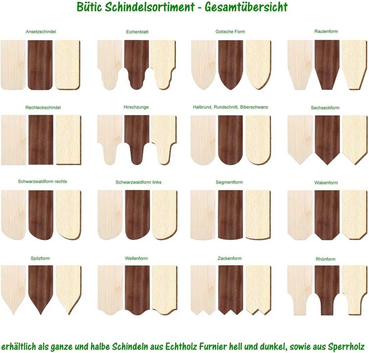 Scandole di legno compensato – Foresta Nera Forma destra – dimensioni e quantità di selezione, Compensato, 100 pezzi, 20mm x 10mm