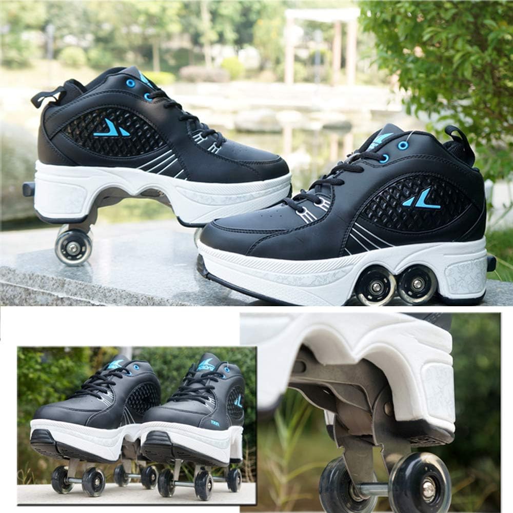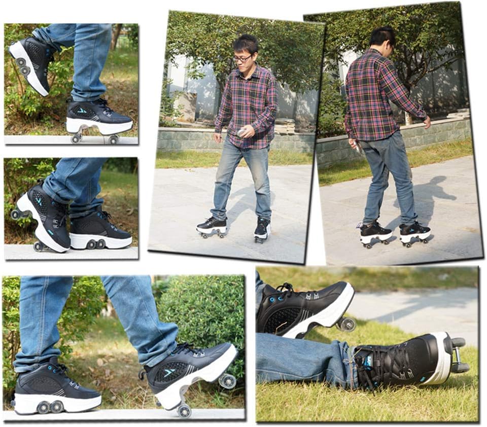 ★ Scarpe sportive deformabili multifunzionali, pattini leggeri che ti consentono di fare esercizi di fitness sempre e ovunque nella tua vita quotidiana: la combinazione perfetta di tempo libero e sport. ★ L'esclusivo design del pulsante invisibile impedisce l'apertura accidentale. C'è un pulsante sul retro della scarpa. Premilo e le ruote si apriranno. Tenere premuto il pulsante, spingere la ruota verso la piastra di base e poi rilasciarla. ★ Piccolo, leggero, facile da trasportare, può essere installato gratuitamente su scarpe basse, eliminando lo sforzo di trasporto e assemblaggio. ★ Ha un buon equilibrio e comfort, è facile controllare il centro di gravità del corpo ed è sicuro da usare. ★ Scarpe da skate moderne ed eleganti, scarpe alla moda multifunzionali per pattinaggio, feste, discoteca, ballo, compleanno, Natale.