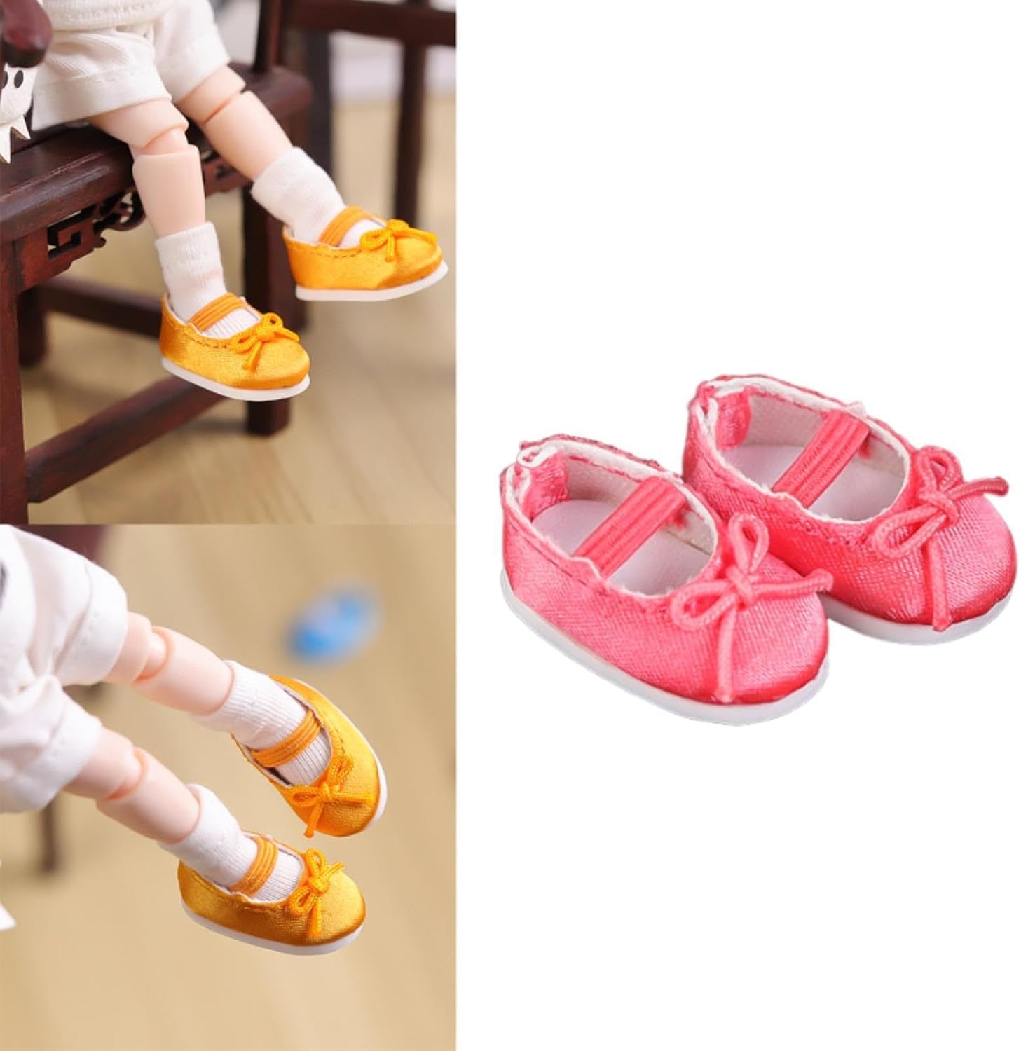 【Set completo】: riceverai 1 paio di adorabili mini scarpe da bambola che miglioreranno il guardaroba della tua bambola con un tocco elegante e giocoso e sono perfette per completare qualsiasi look o outfit a tema. 【Materiale di alta qualità】: Realizzate in tessuto traspirante, queste mini scarpette da ballo sono morbide ma resistenti all'usura, garantendo un uso a lungo termine e proteggendo i delicati piedini delle bambole. 【Misura adattabile】: la scarpa misura 2,5 cm x 1,1 cm (0,98" x 0,43") per una vestibilità adeguata. Per una migliore vestibilità scegliere la taglia doppia. 【Design affascinante】: queste scarpe sono classiche scarpette da balletto elaborate e creano un look divertente e alla moda che può essere facilmente combinato con diversi abiti da bambola.
