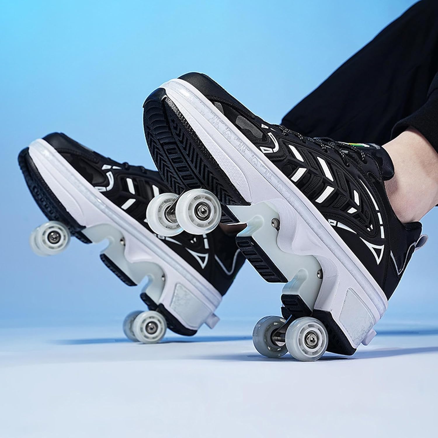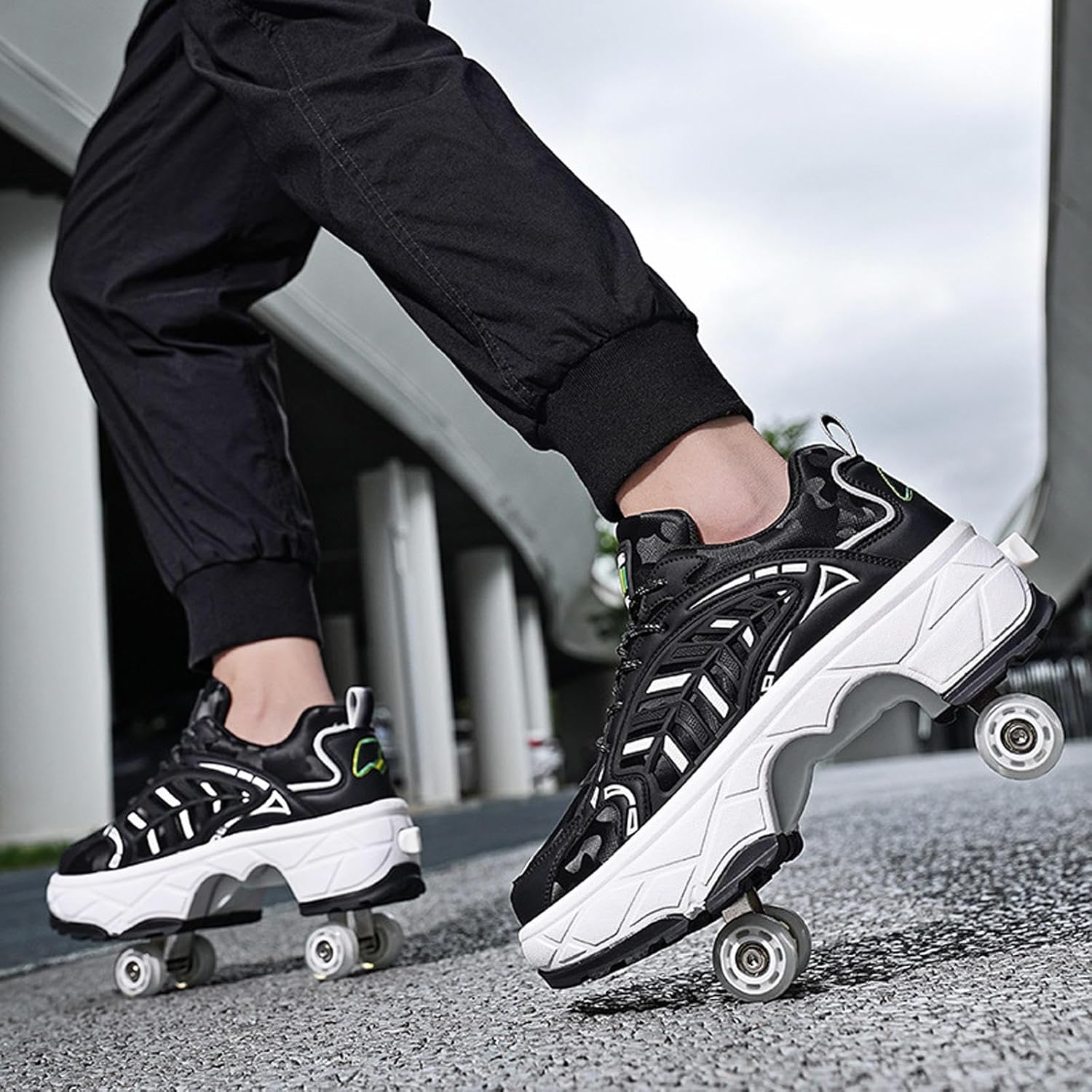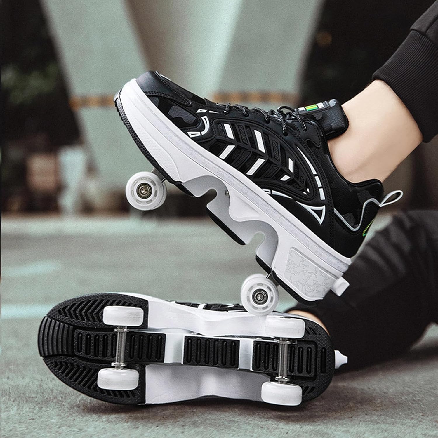 【Materiali di alta qualità】 La tomaia in microfibra di alta qualità è resistente agli strappi e più stabile, abbinata a un design con fori densi e traspiranti, confortevole e traspirante, dissipa efficacemente il calore e durevole senza rigidità. Intersuola in EVA con design della suola in gomma, ammortizzazione leggera, resistente all'usura e antiscivolo. 【Durevole e robusto】 Realizzato con ruote per infusione in PU, elevata resistenza all'usura, elevata elasticità, prestazioni di scorrimento stabili e durevoli. Telaio in acciaio ricamato, più stabile, portante fino a 150 chilogrammi. 【Pattini a rotelle due in uno】 Questo è un pattino a rotelle multifunzionale che combina camminata, pattinaggio e sport. Con un solo calcio si trasforma in carrucola e poi di nuovo in scarpa sportiva. È versatile e comodo da usare per bambini e principianti. 【Selezione della taglia】 La nostra taglia è una taglia standard, puoi scegliere la taglia appropriata in base alla tabella delle taglie, si consiglia di scegliere in base alla tua situazione attuale. Se i tuoi piedi sono leggermente più larghi, si consiglia di scegliere una taglia più grande. Se preferisci indossare scarpe larghe, ti consigliamo di scegliere anche una taglia più grande. 【Regalo ideale】 Questo è un pattino sportivo molto interessante, alla moda e innovativo, con praticità, sicurezza, comfort e significato educativo. È un'attrezzatura sportiva ricreativa per adolescenti e bambini e anche il regalo perfetto per la famiglia e gli amici.