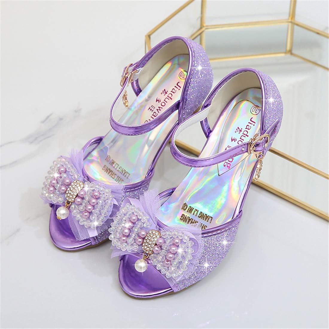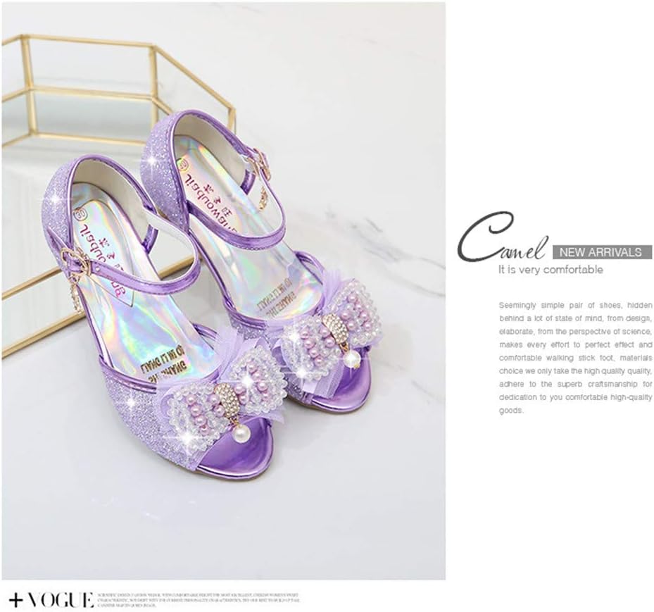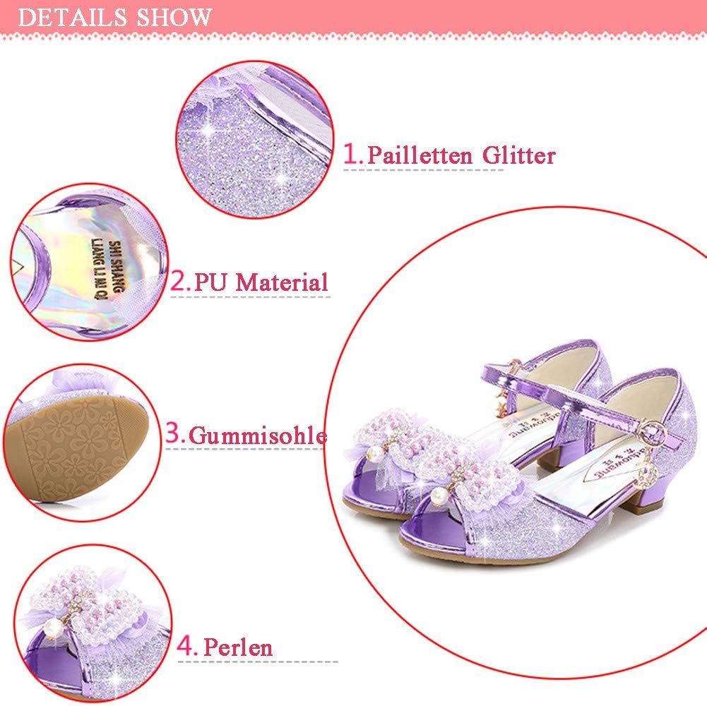 Scarpe da principessa per ragazze Scarpe ELSA con tacco Scarpe glitterate Décolleté in cristallo per bambini Accessori per costumi da ragazza Scarpe Viola Blu Rosa Argento dorato nella taglia 26-38