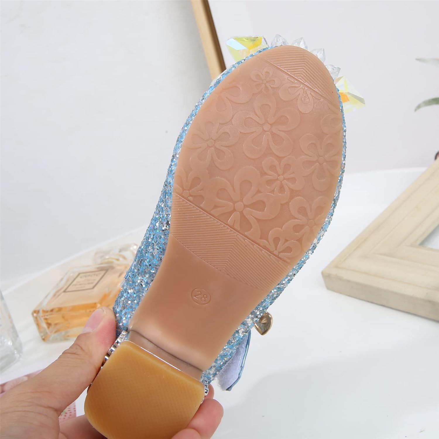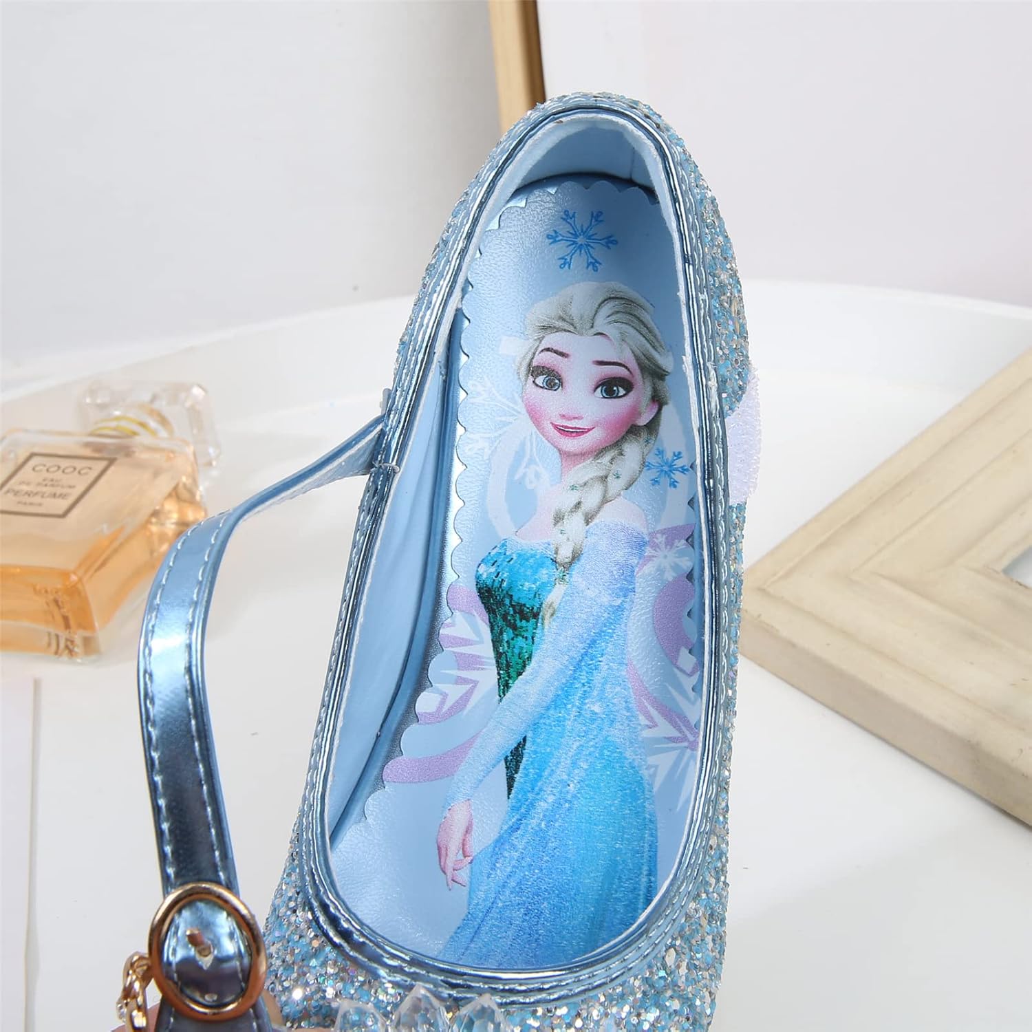 Scarpe da ragazza Elsa in cristallo con tacco Scarpe da principessa glitterate con paillettes Sandali per bambini Regina del ghiaccio per la festa di compleanno di carnevale di Halloween