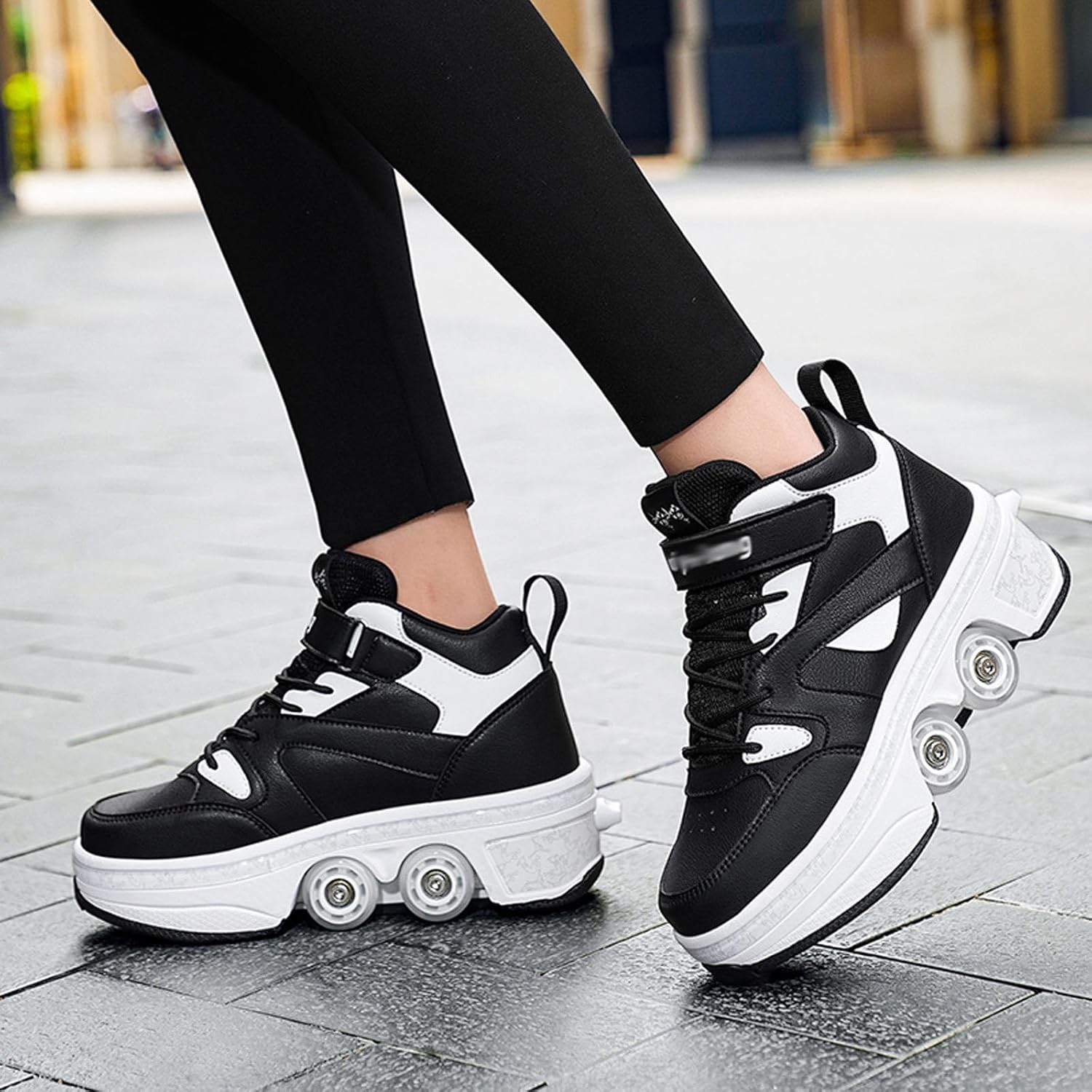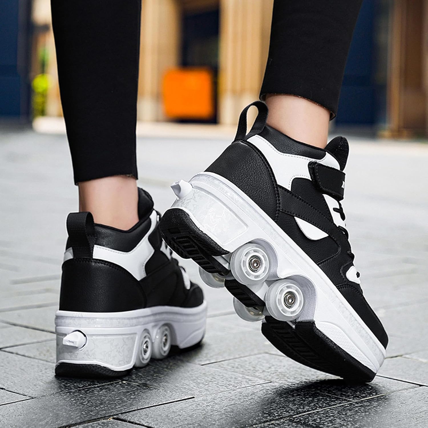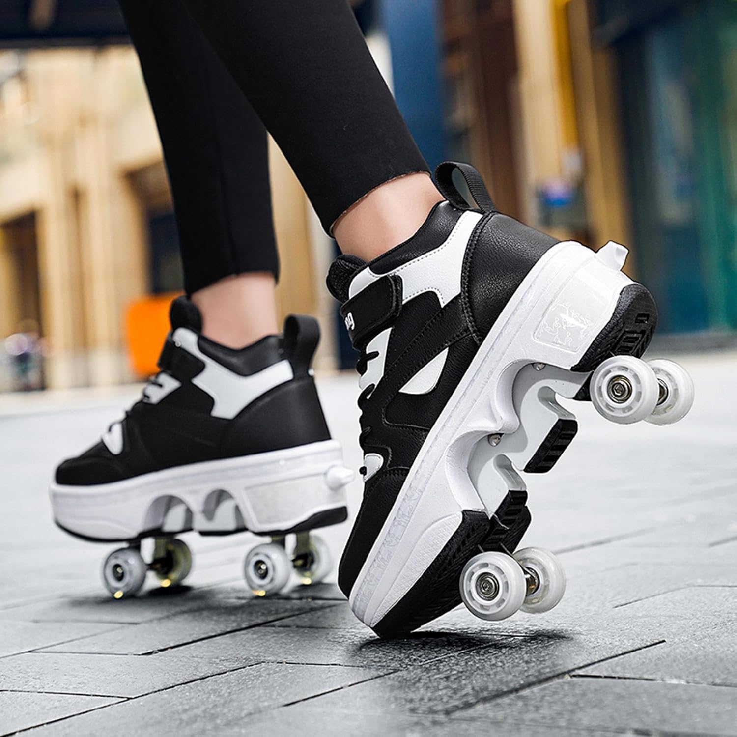 【Materiali di alta qualità】 La tomaia in microfibra di alta qualità è resistente agli strappi e più stabile, abbinata a un design con fori densi e traspiranti, confortevole e traspirante, dissipa efficacemente il calore e durevole senza rigidità. Intersuola in EVA con design della suola in gomma, ammortizzazione leggera, resistente all'usura e antiscivolo. 【Durevole e robusto】 Realizzato con ruote per infusione in PU, elevata resistenza all'usura, elevata elasticità, prestazioni di scorrimento stabili e durevoli. Telaio in acciaio ricamato, più stabile, portante fino a 100 chilogrammi. 【Pattini a rotelle due in uno】 Questo è un pattino a rotelle multifunzionale che combina camminata, pattinaggio e sport. Con un solo calcio si trasforma in carrucola e poi di nuovo in scarpa sportiva. È versatile e comodo da usare per bambini e principianti. 【Selezione della taglia】 La nostra taglia è una taglia standard, puoi scegliere la taglia appropriata in base alla tabella delle taglie, si consiglia di scegliere in base alla tua situazione attuale. Se i tuoi piedi sono leggermente più larghi, si consiglia di scegliere una taglia più grande. Se preferisci indossare scarpe larghe, ti consigliamo di scegliere anche una taglia più grande. 【Regalo ideale】 Questo è un pattino sportivo molto interessante, alla moda e innovativo, con praticità, sicurezza, comfort e significato educativo. È un'attrezzatura sportiva ricreativa per adolescenti e bambini e anche il regalo perfetto per la famiglia e gli amici.